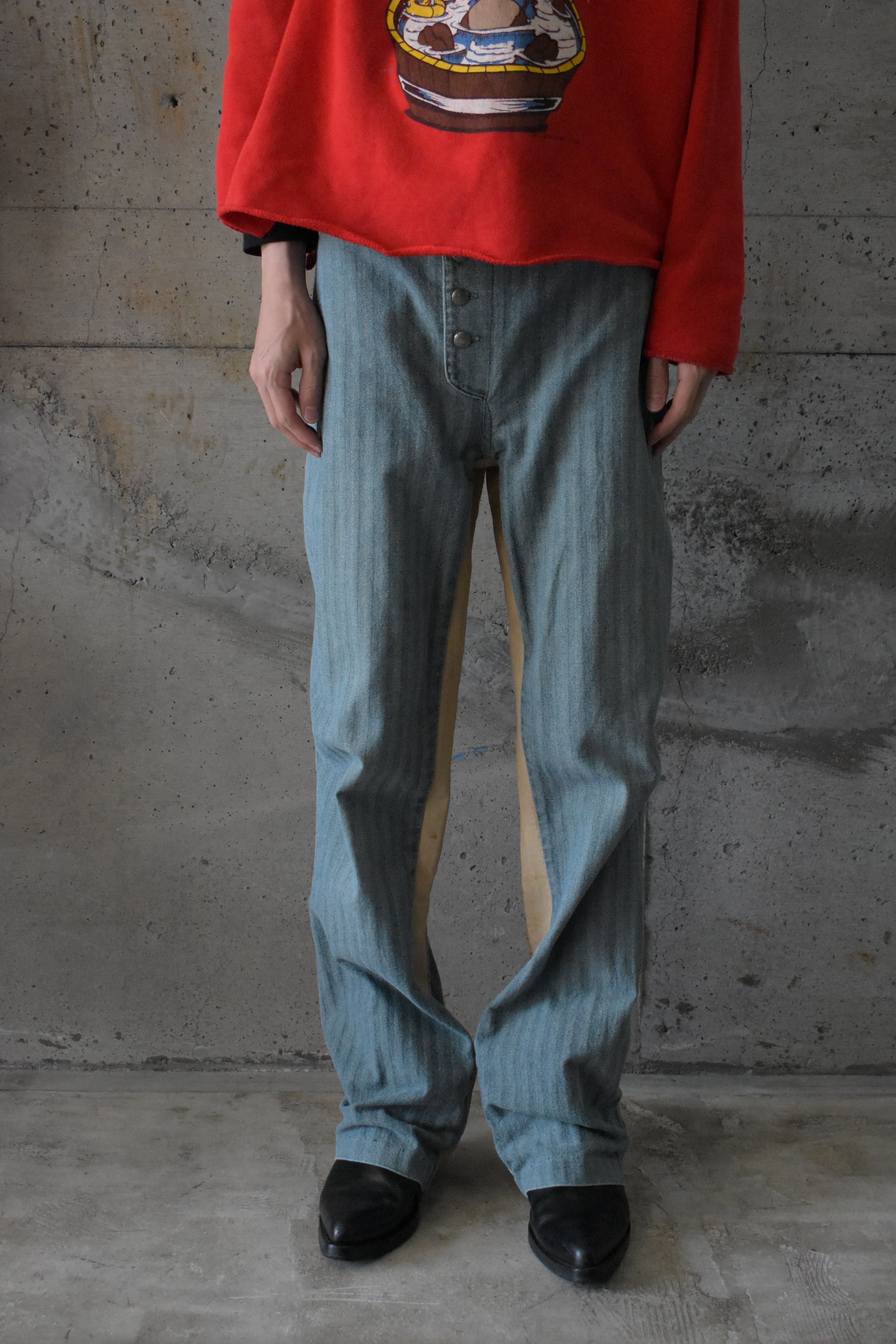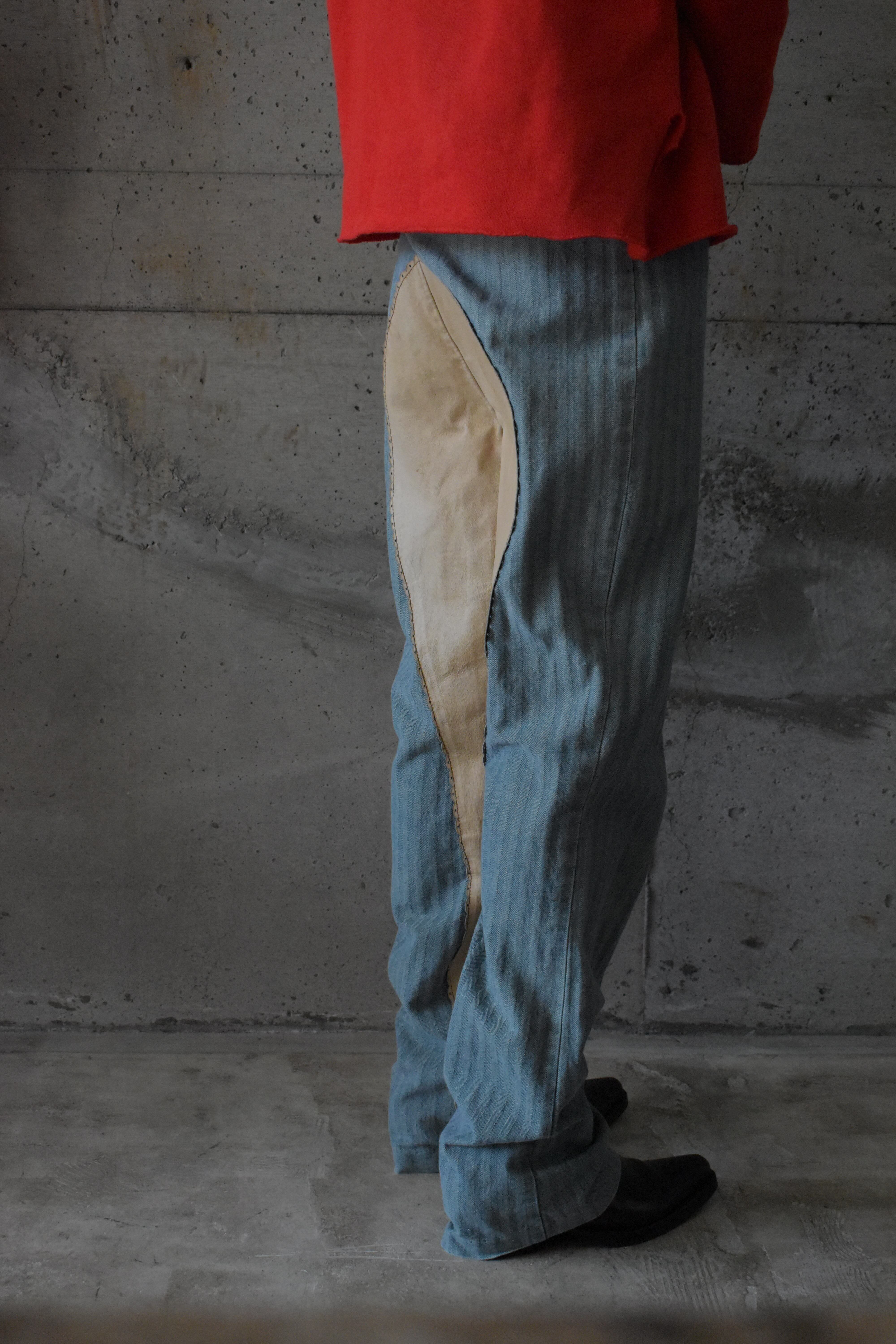 レザーとデニムの切り替えによる、スペシャルな一本です。