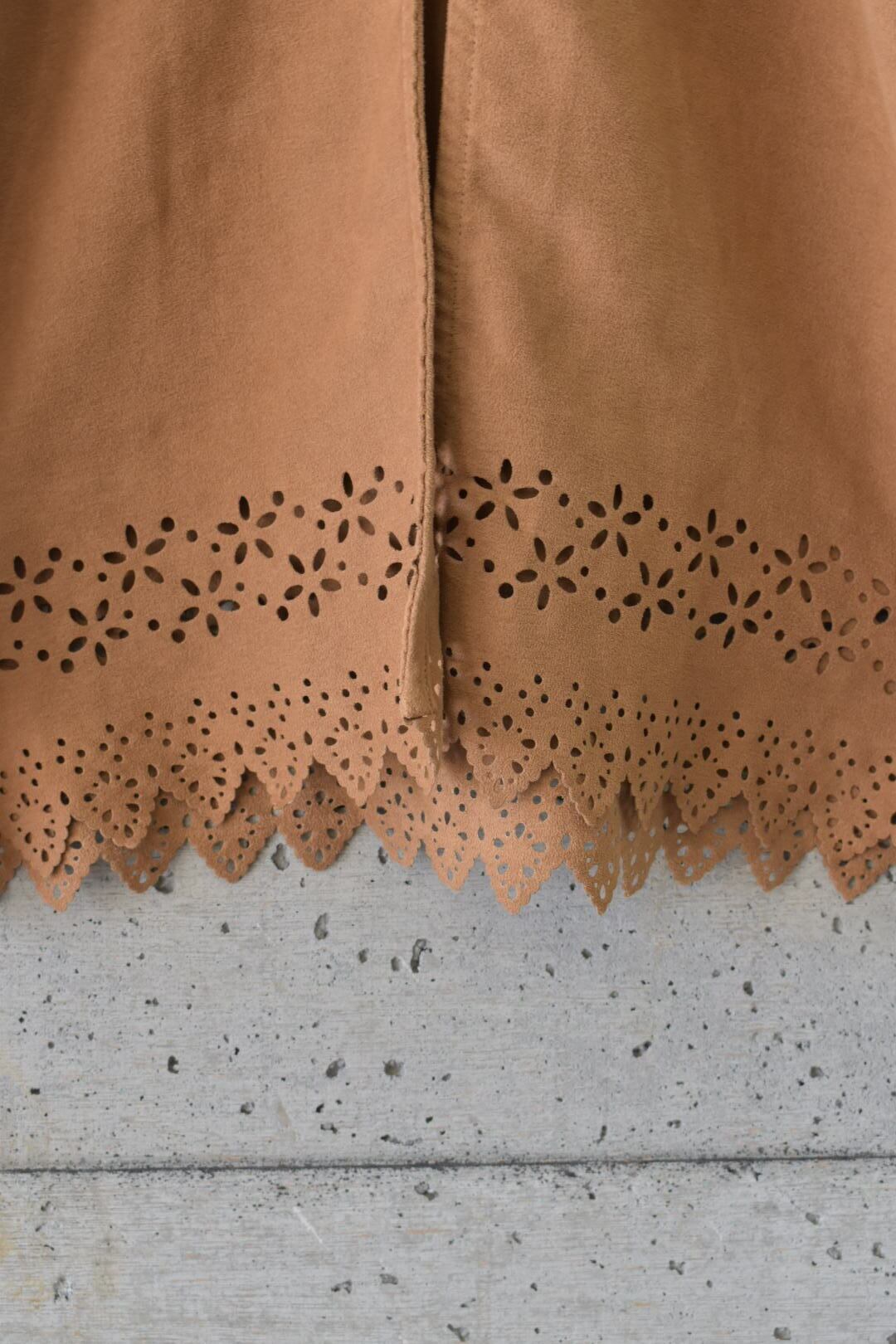 レースにくり抜かれた裾と袖先がガーリーな印象を与えます。
