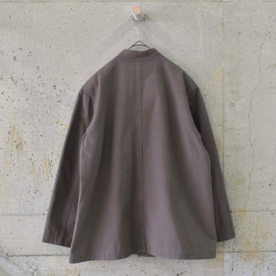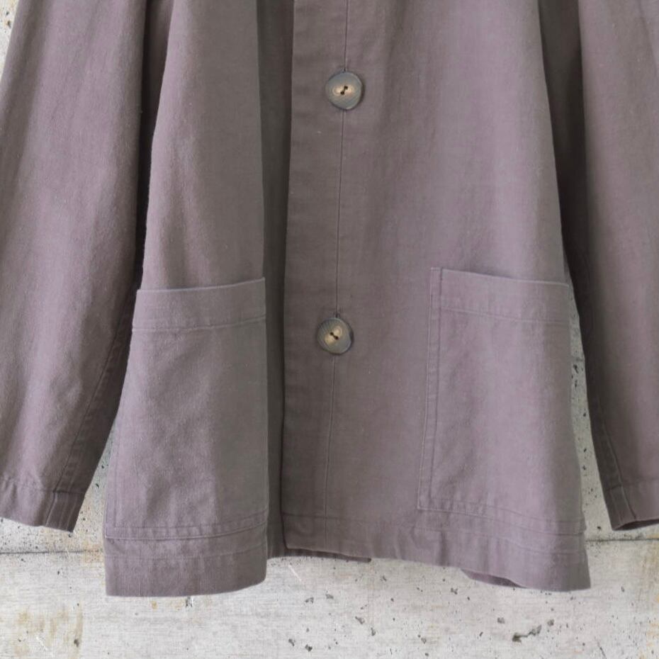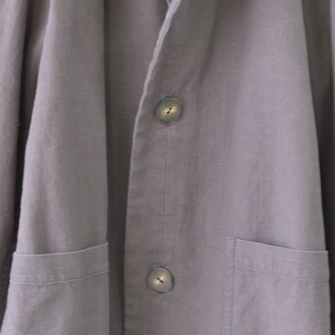 荒めのコットン生地に木を模したボタンの落ち着いた雰囲気のあるジャケットです。