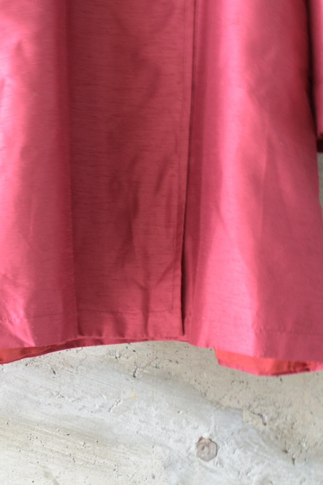 深みのあるローズレッドがとても綺麗で、セミマット生地が上品な存在感を放ちます。
