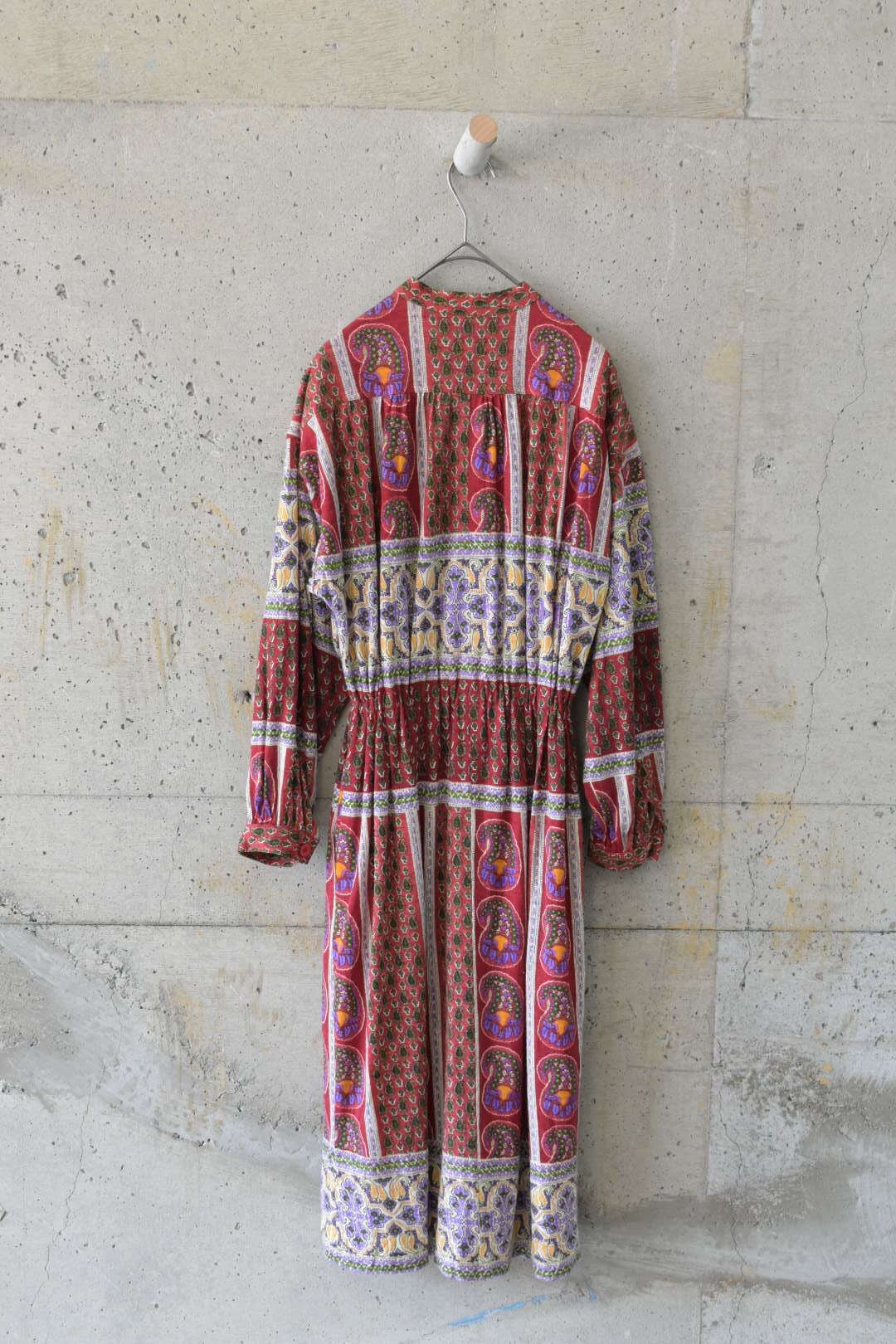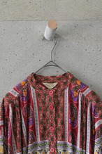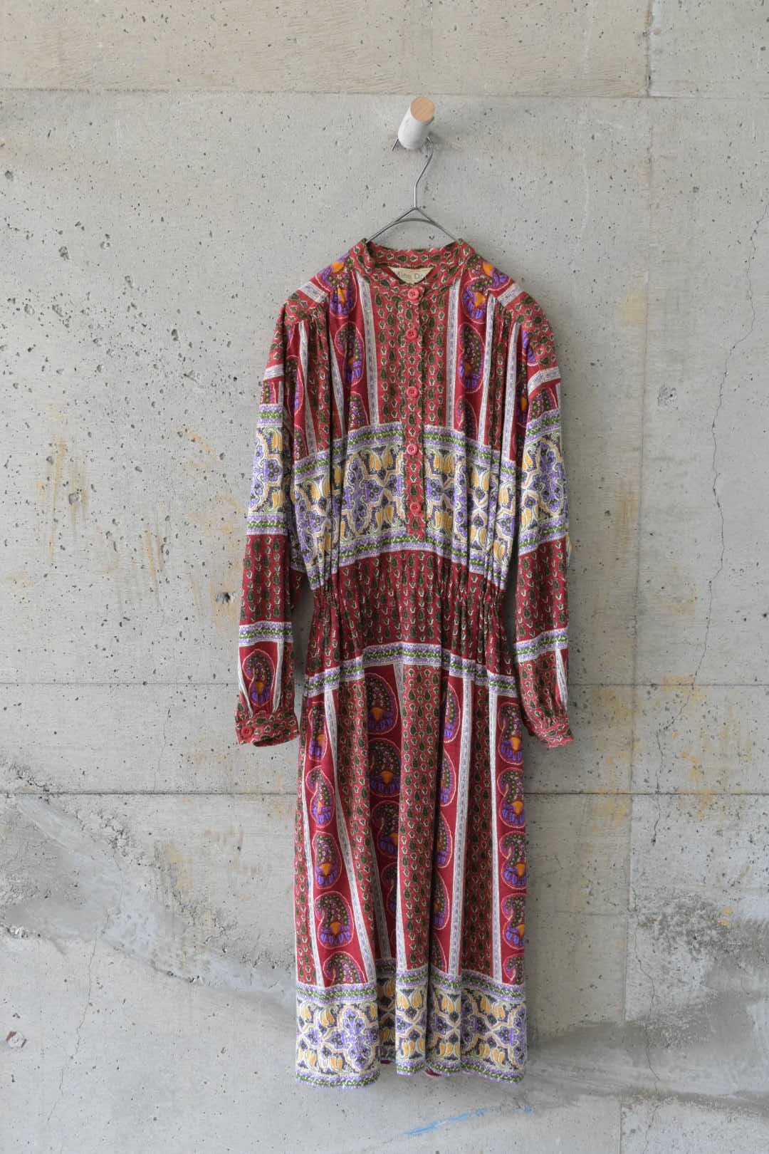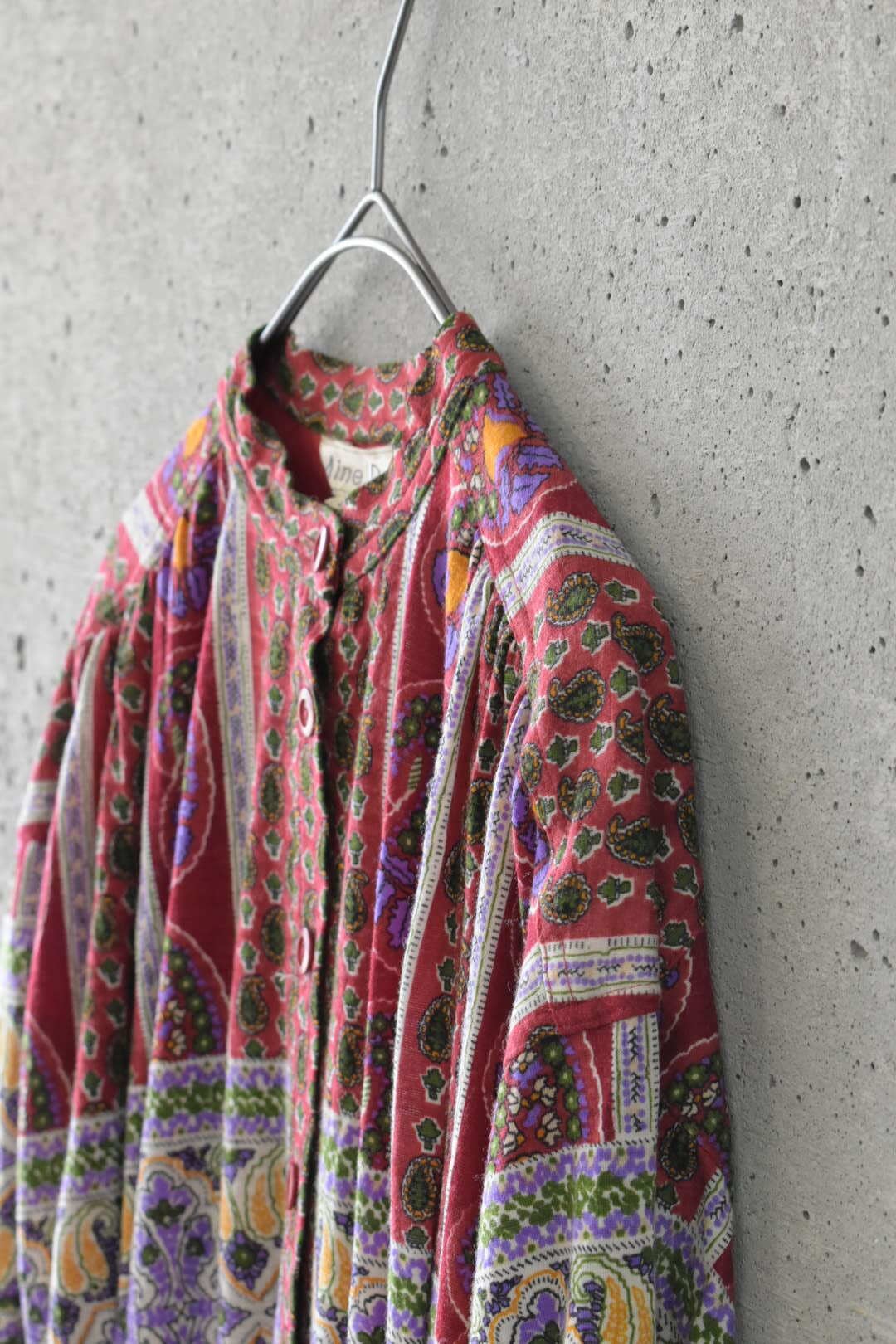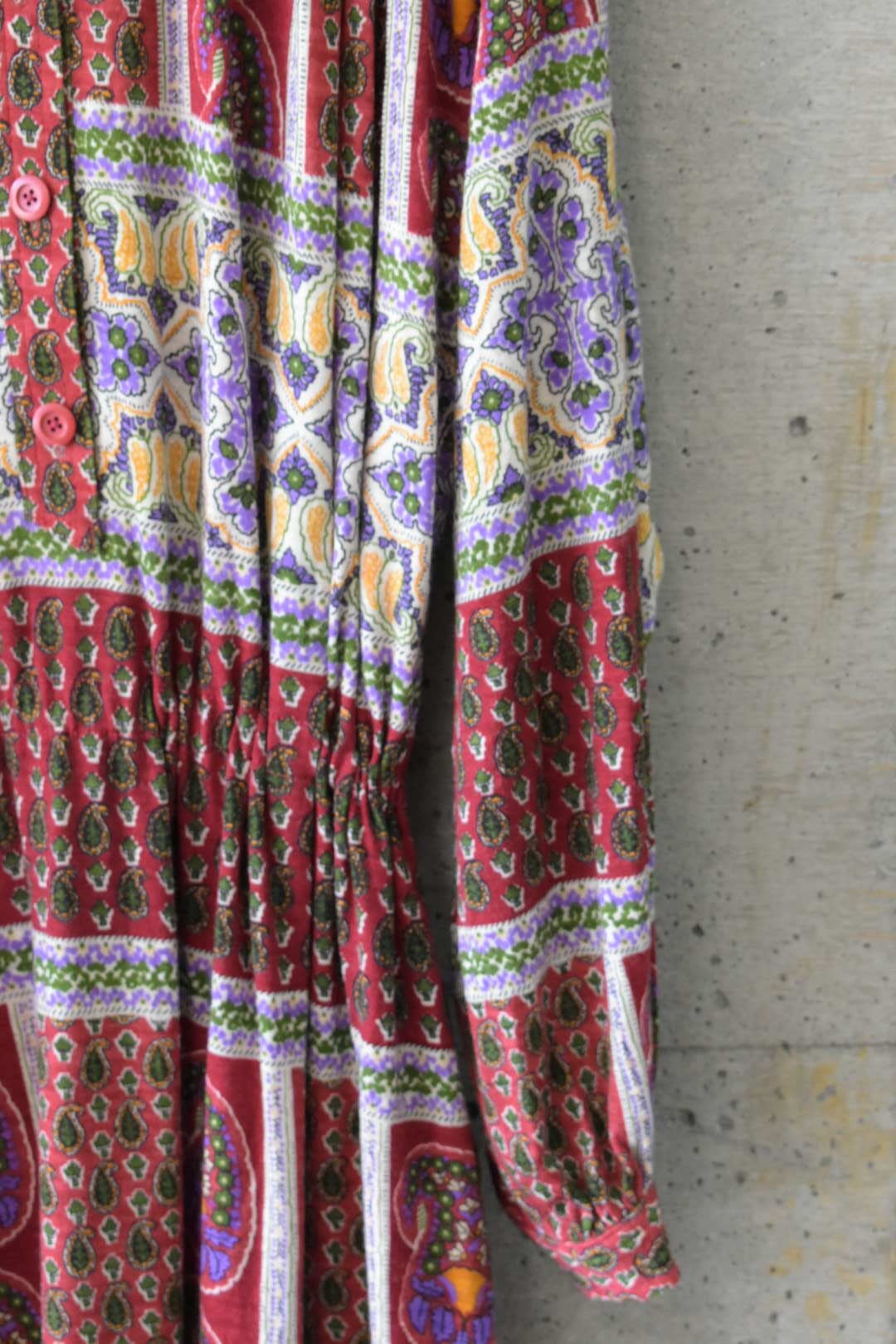 深めの色味とエスニックな柄の相性がとてもよく、華やかながら落ち着きもある印象を醸します。