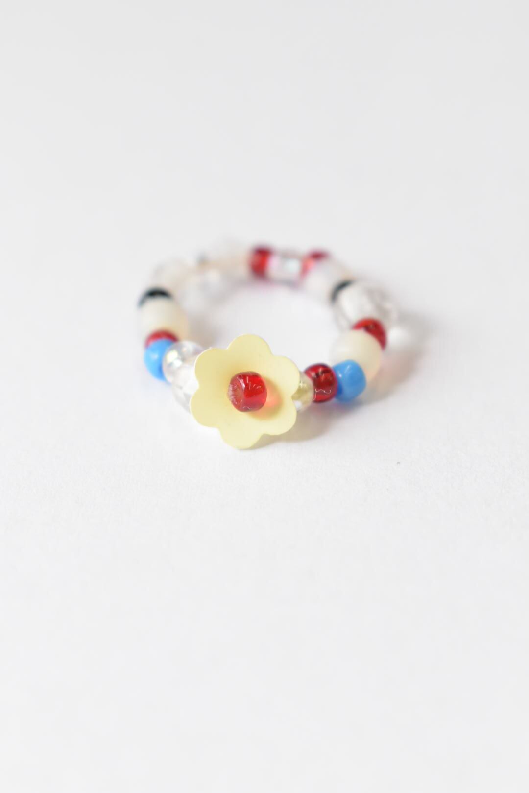 お花のスパンコールがついたビーズリングです。