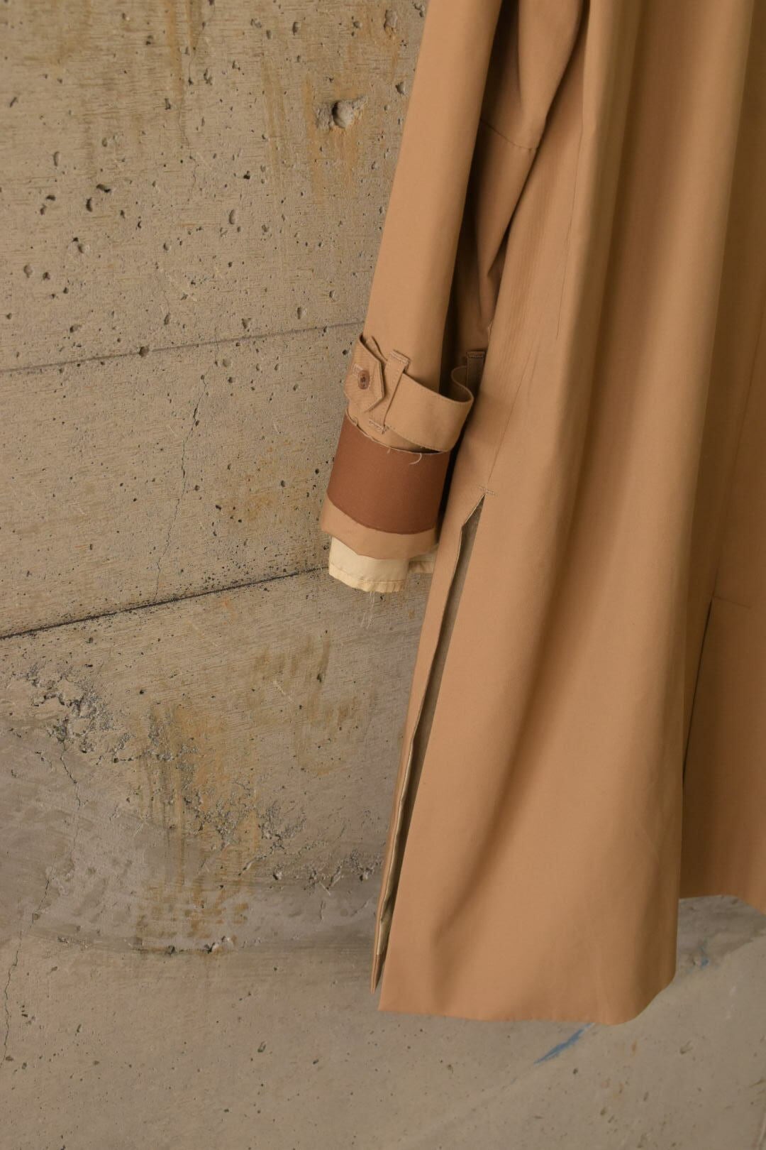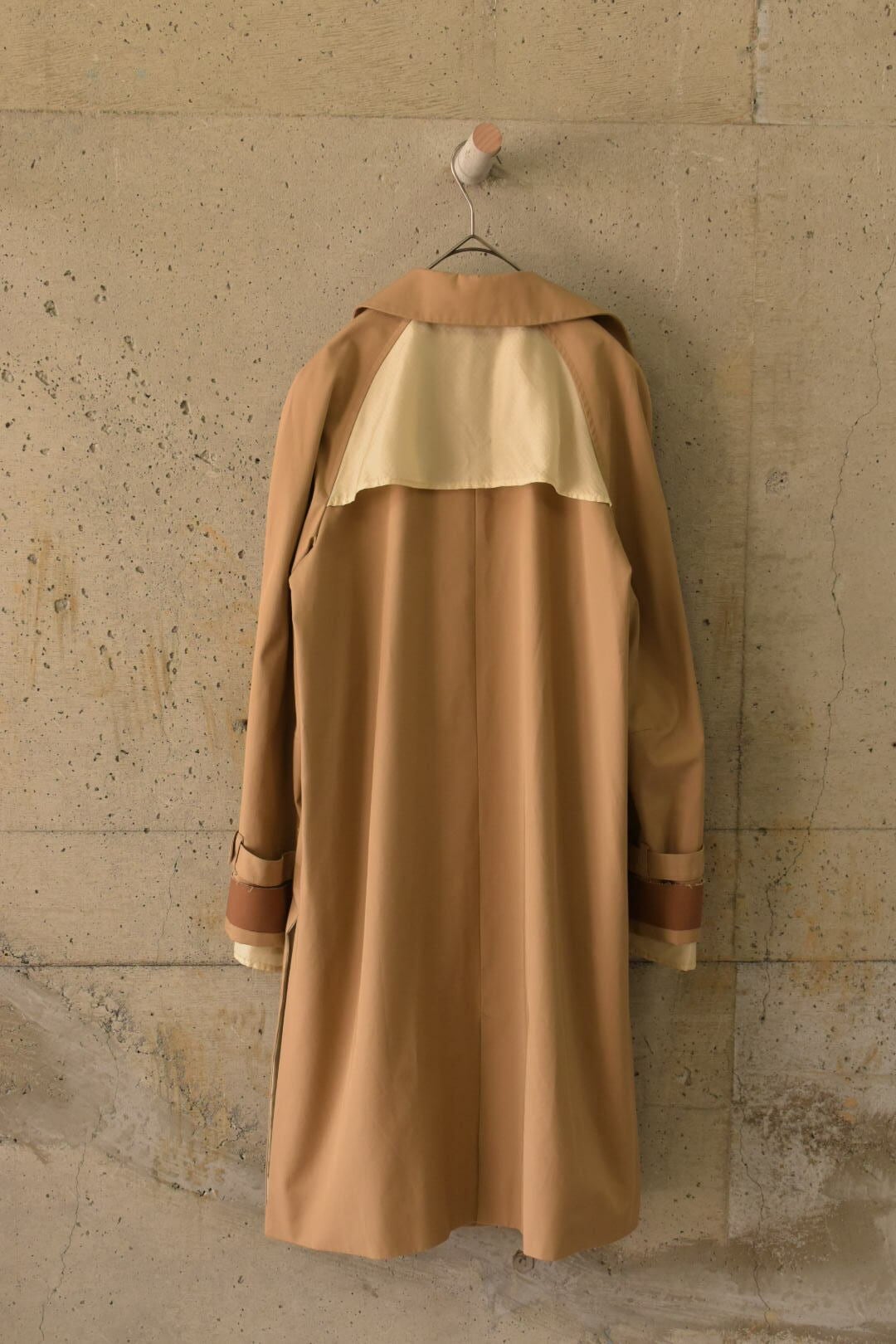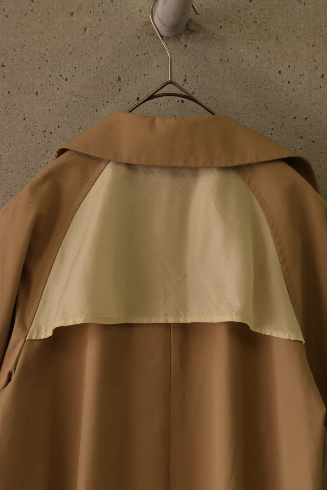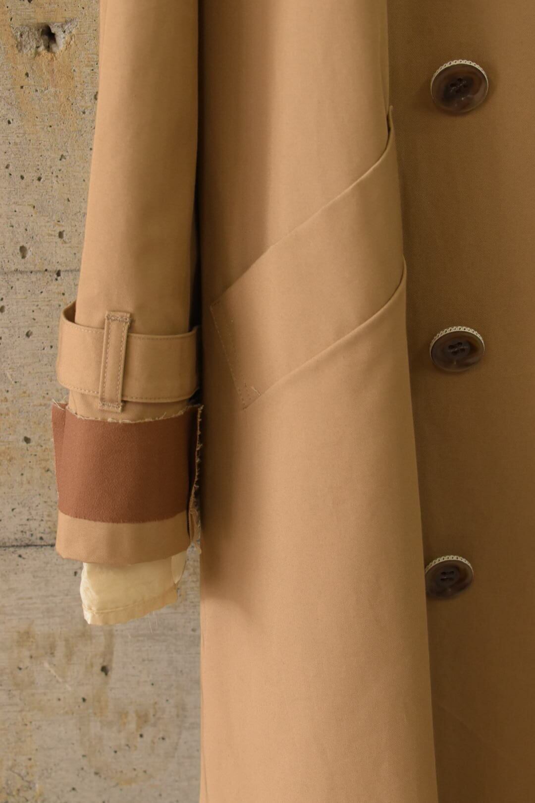 裏地を“内側”に留めないトレンチコートです。