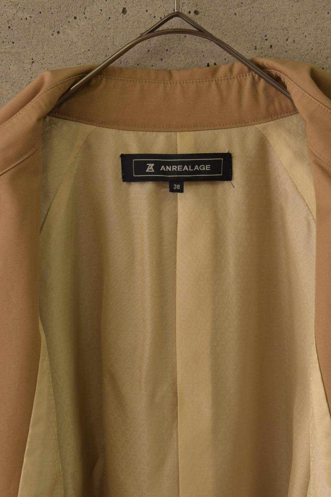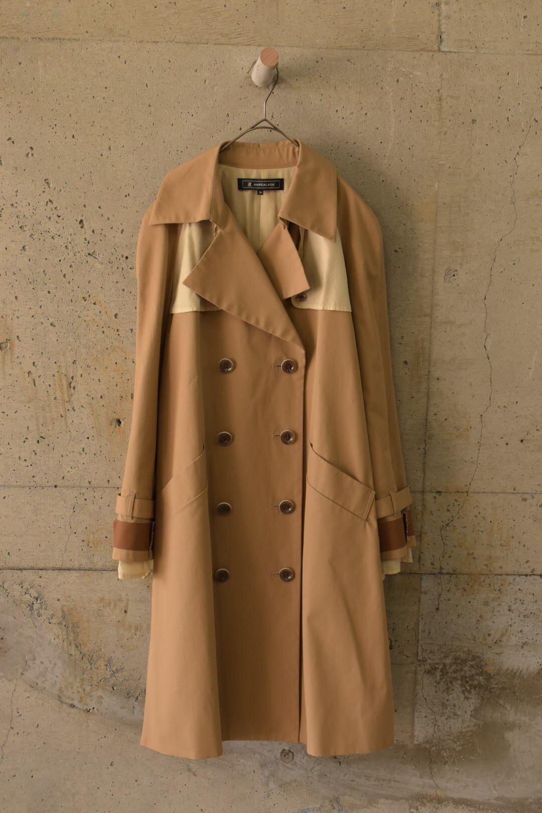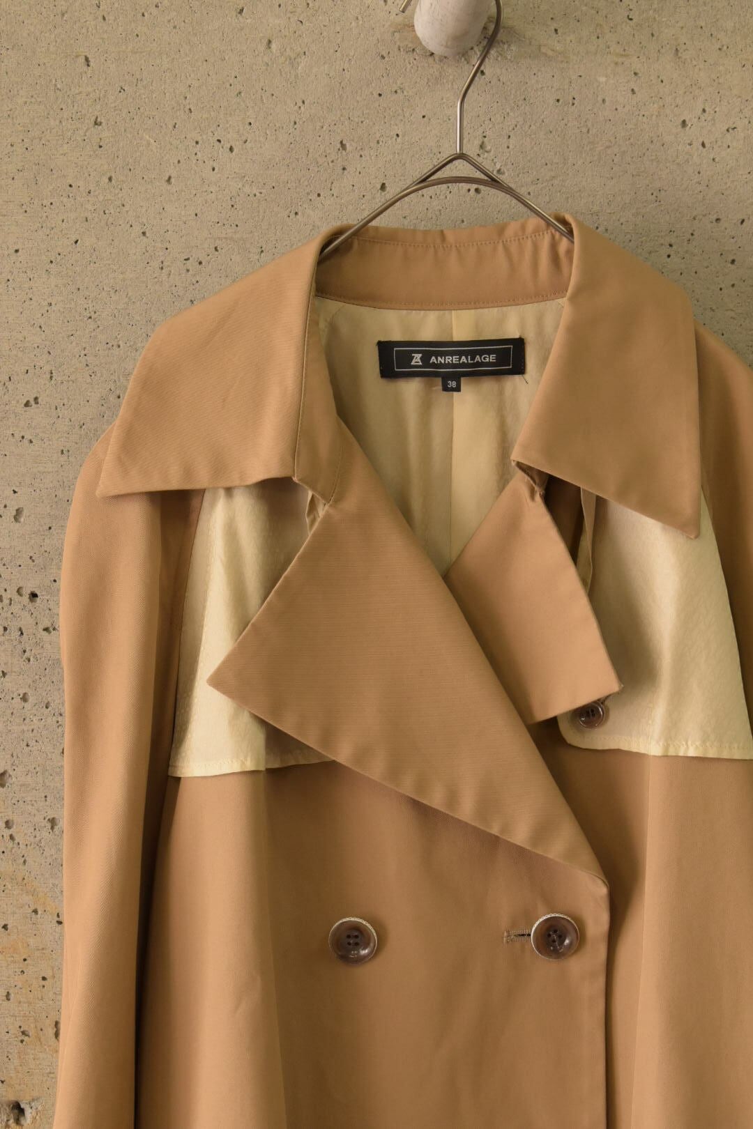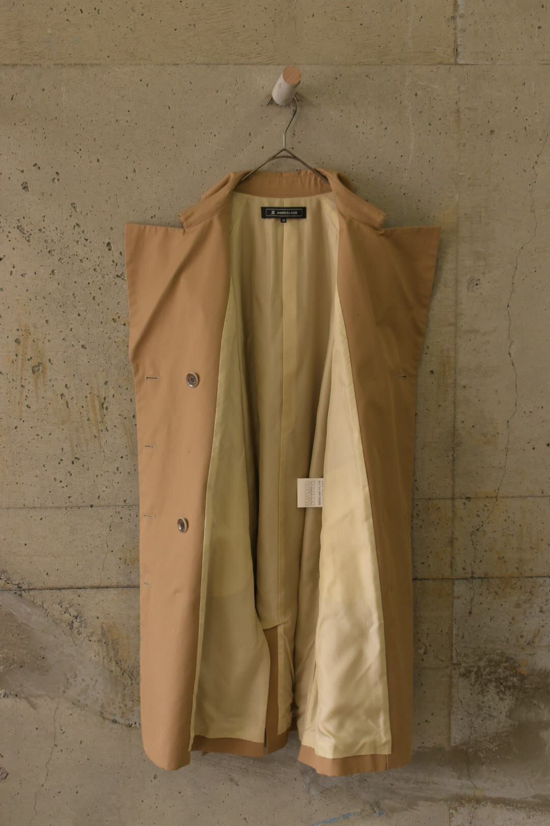裏地を“内側”に留めないトレンチコートです。