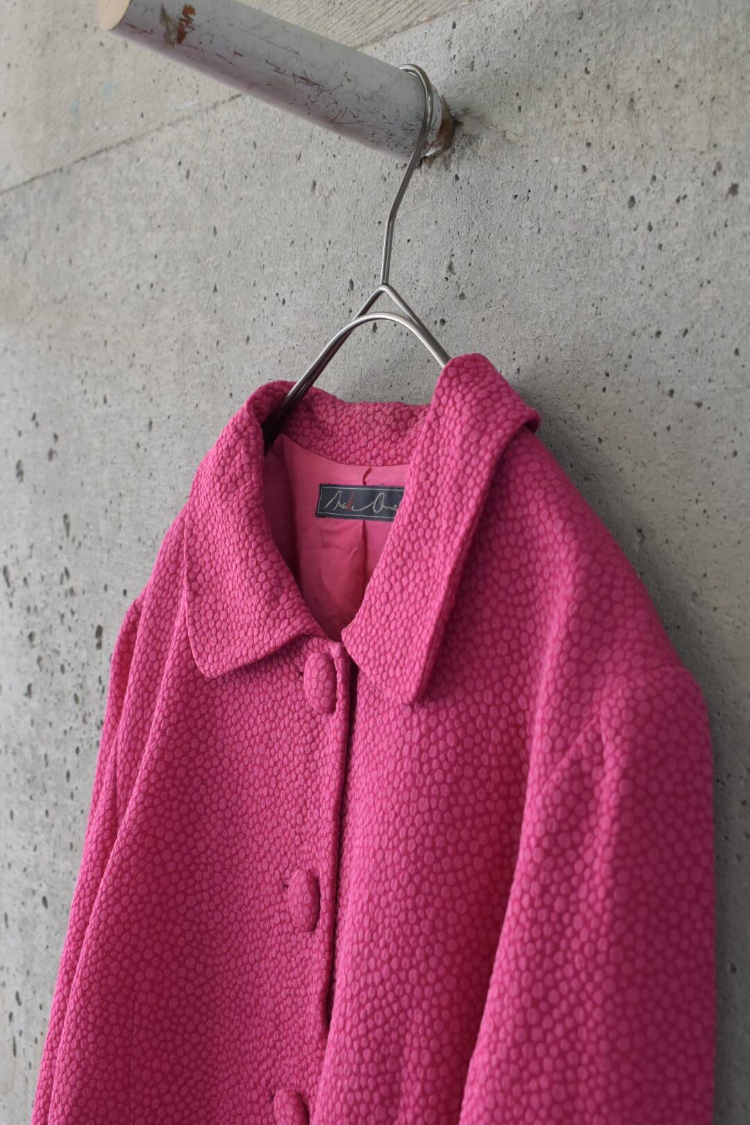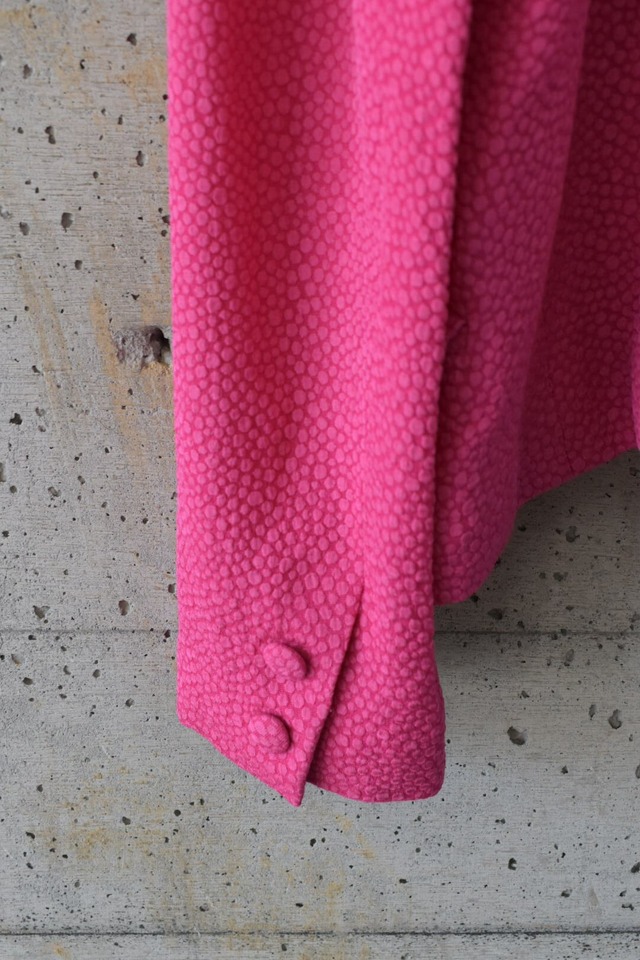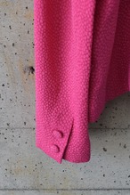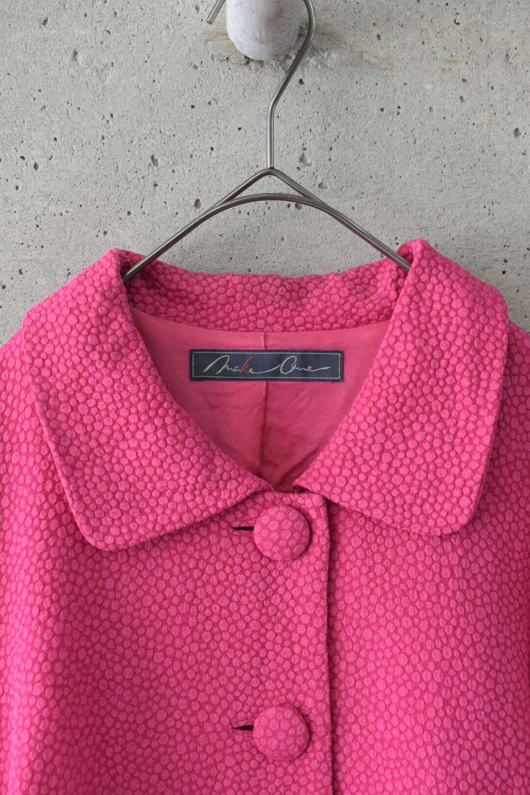 パキッと派手な色味ですが丸めにカットされた襟とくるみボタンが柔らかい雰囲気を演出し、可愛らしい印象も与えます。