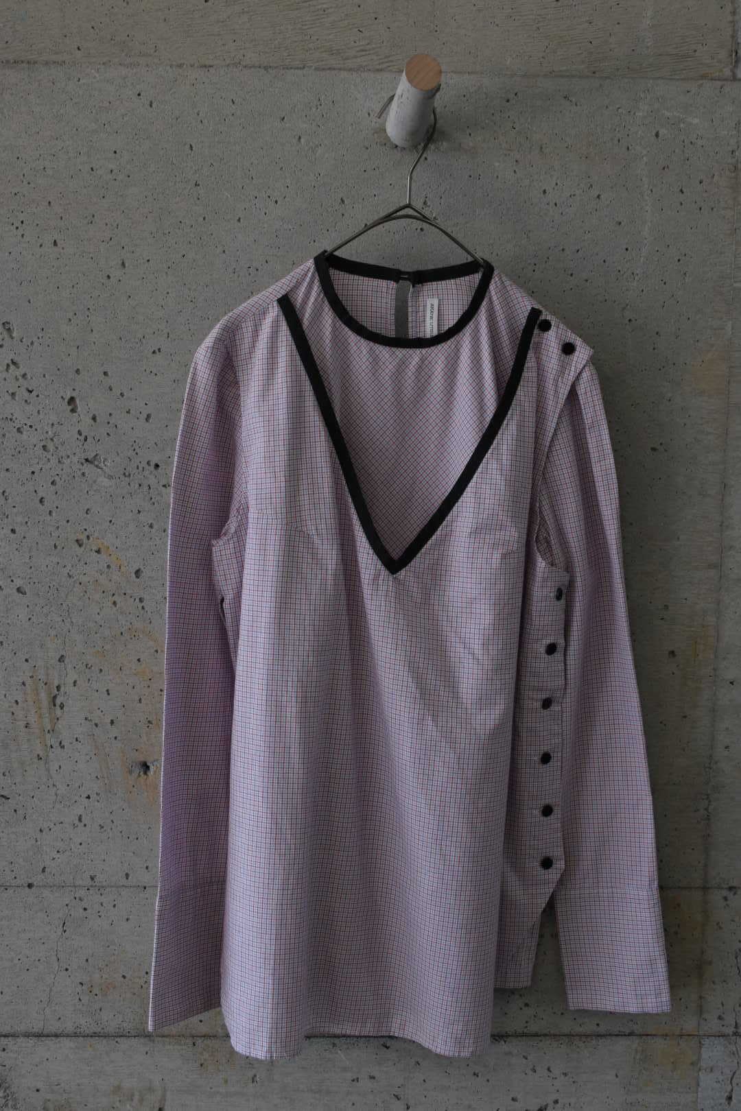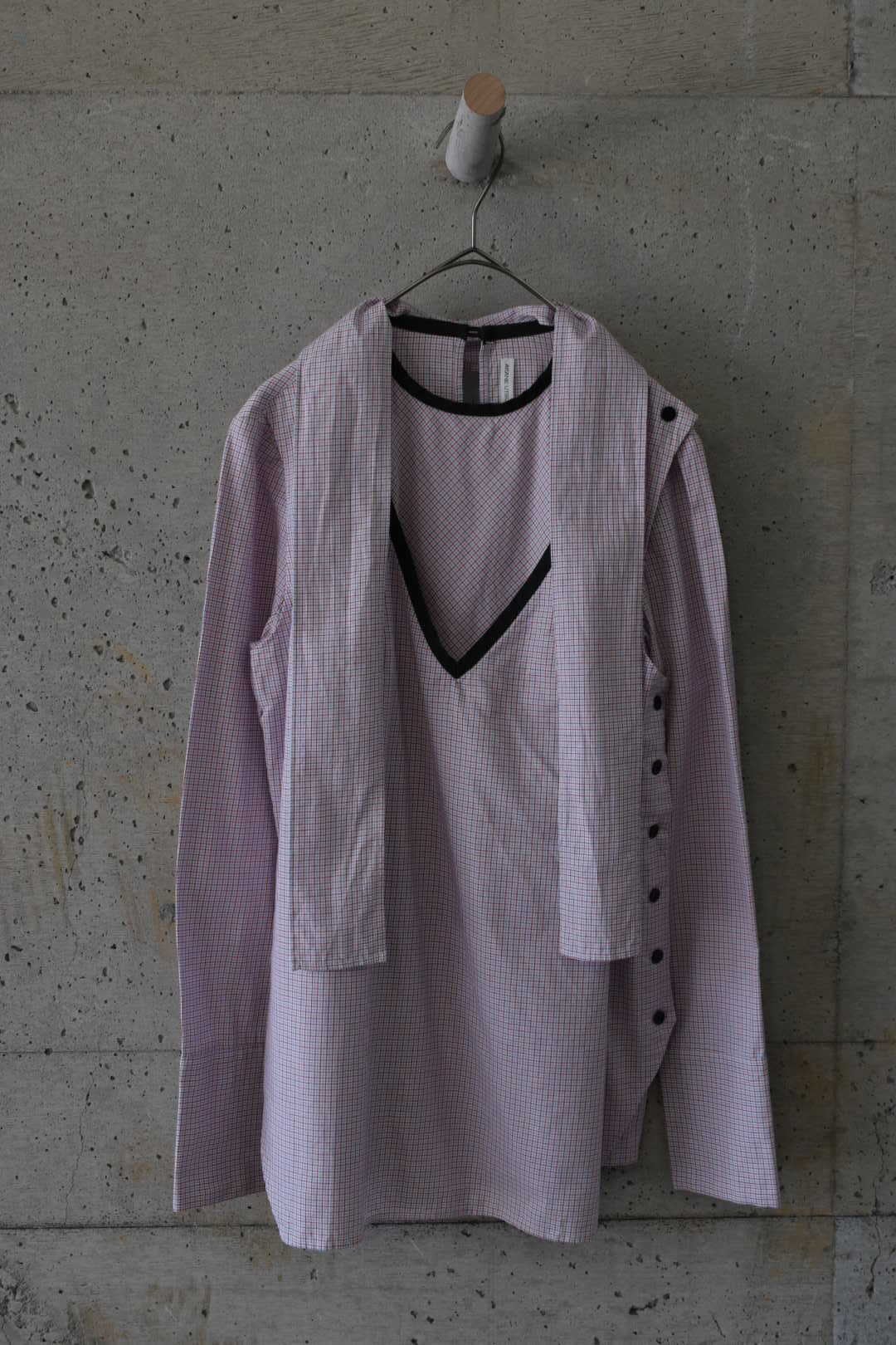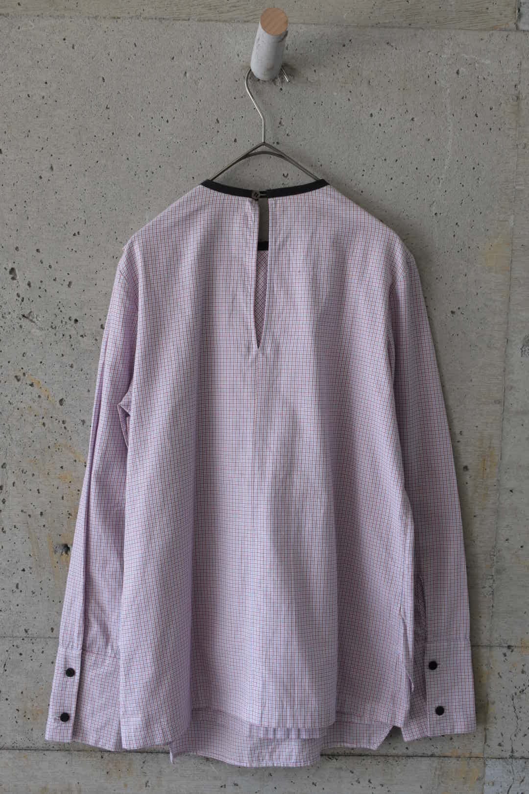 ノーカラーの軽やかさに対して、長めのカフスがきちんとした印象をプラスしています。