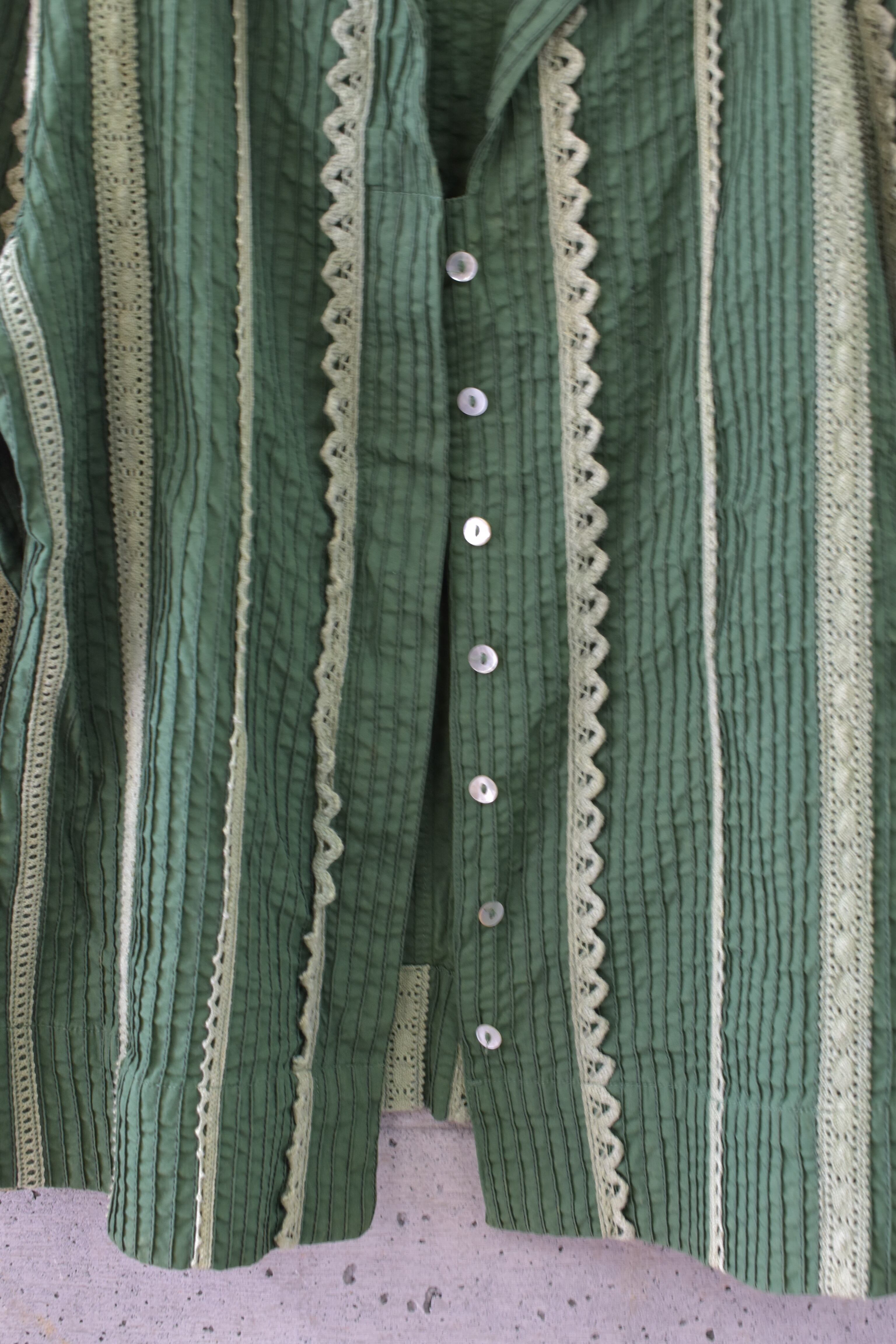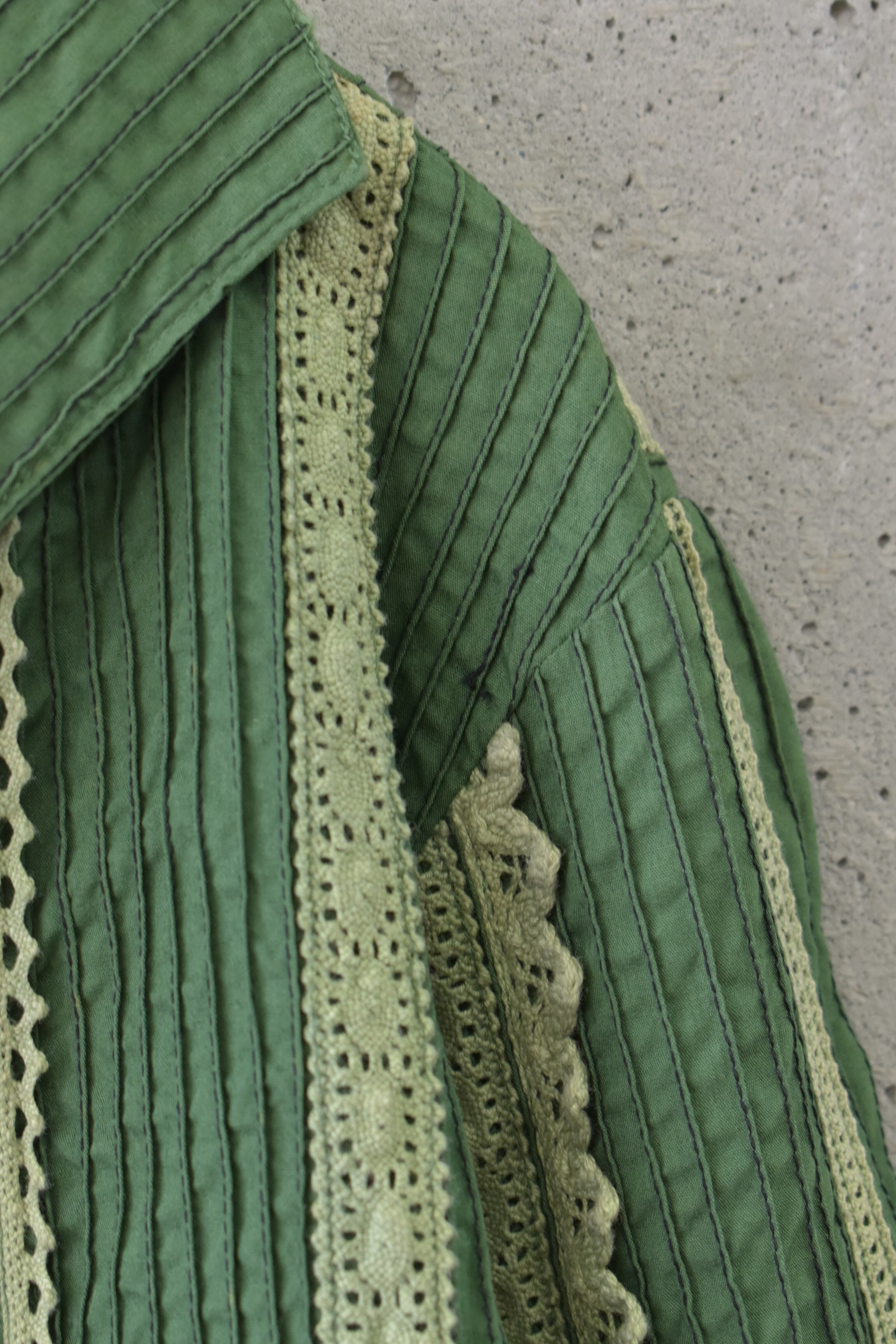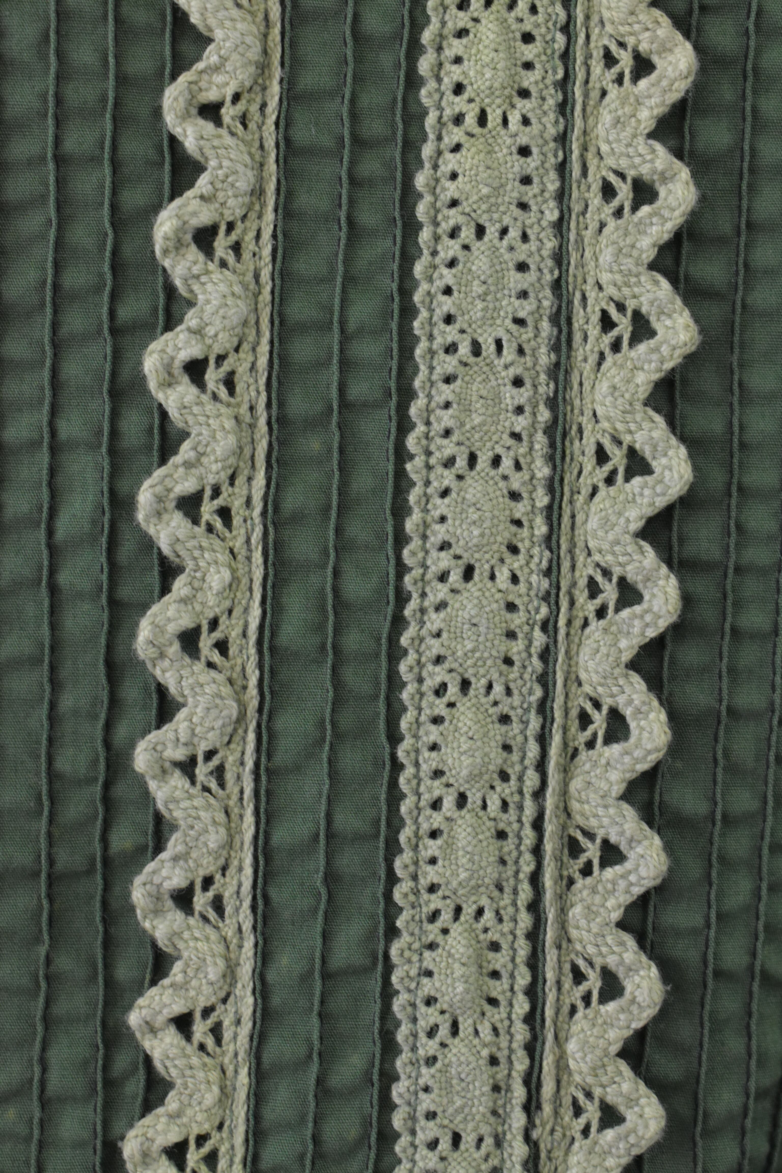 規則的に入った薄い色味のレースが可愛らしい雰囲気になります。