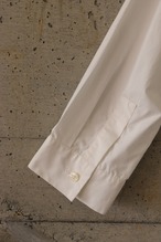 深めに開いたネックとスナップボタンが、クリーンな印象を与えるシャツです。