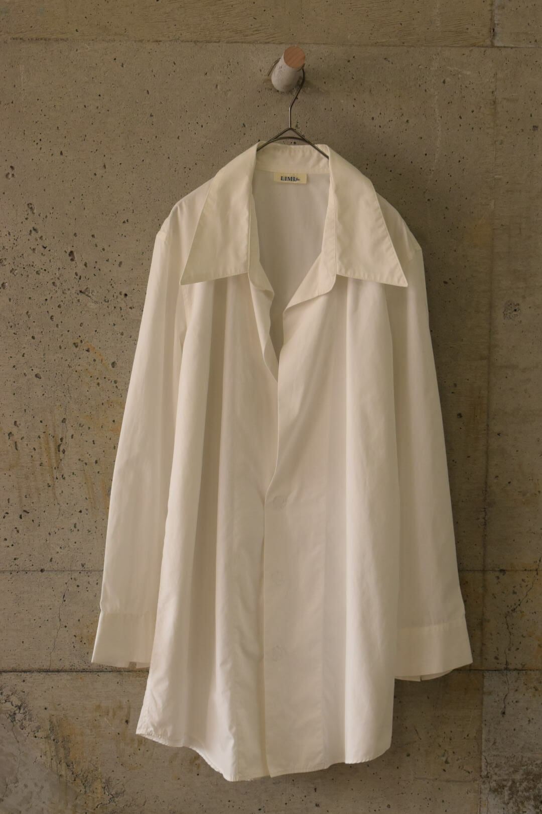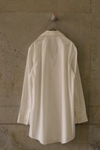 ゆったりとしたサイズ感を活かしてシャツを下に重ねるスタイルもおすすめです。
