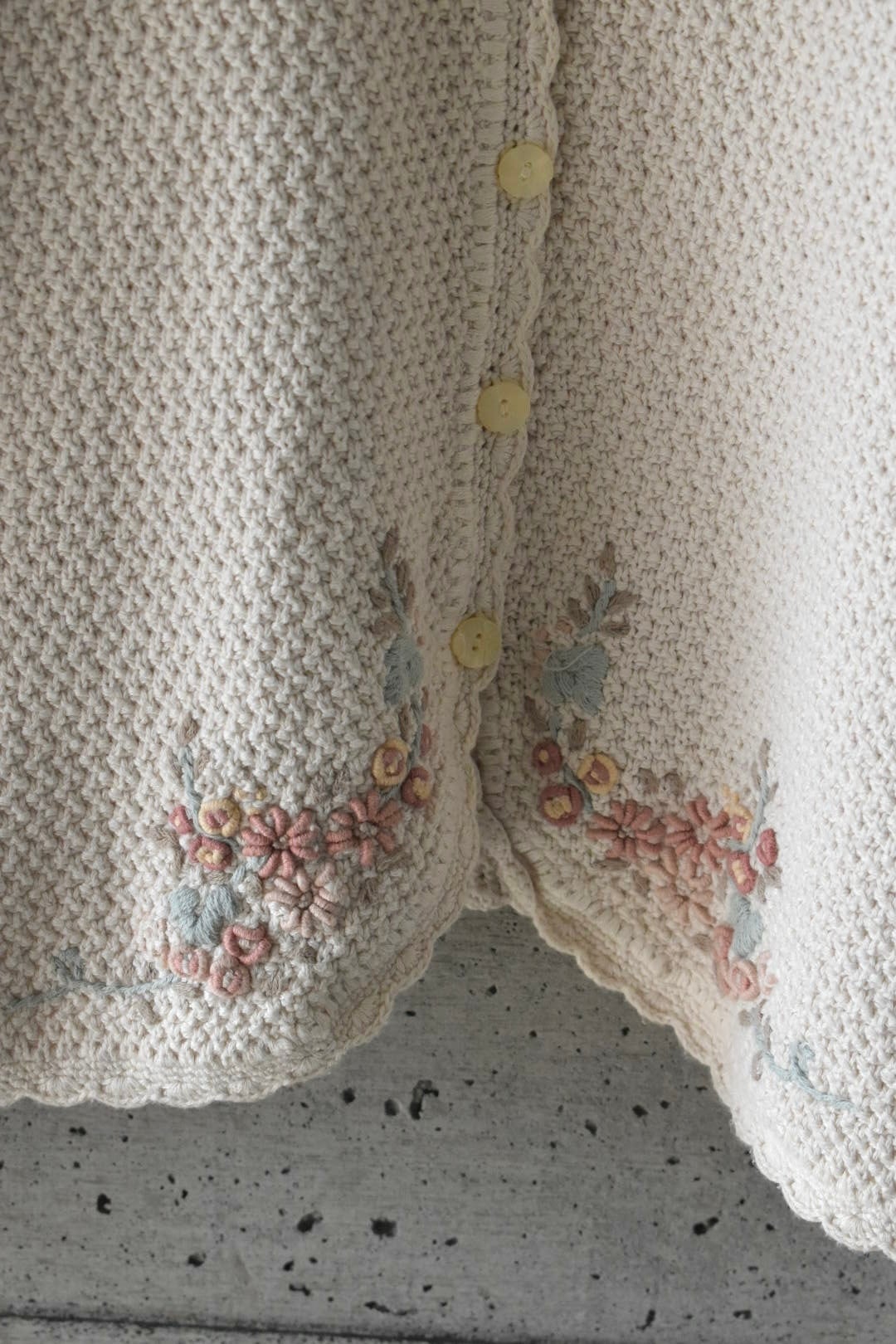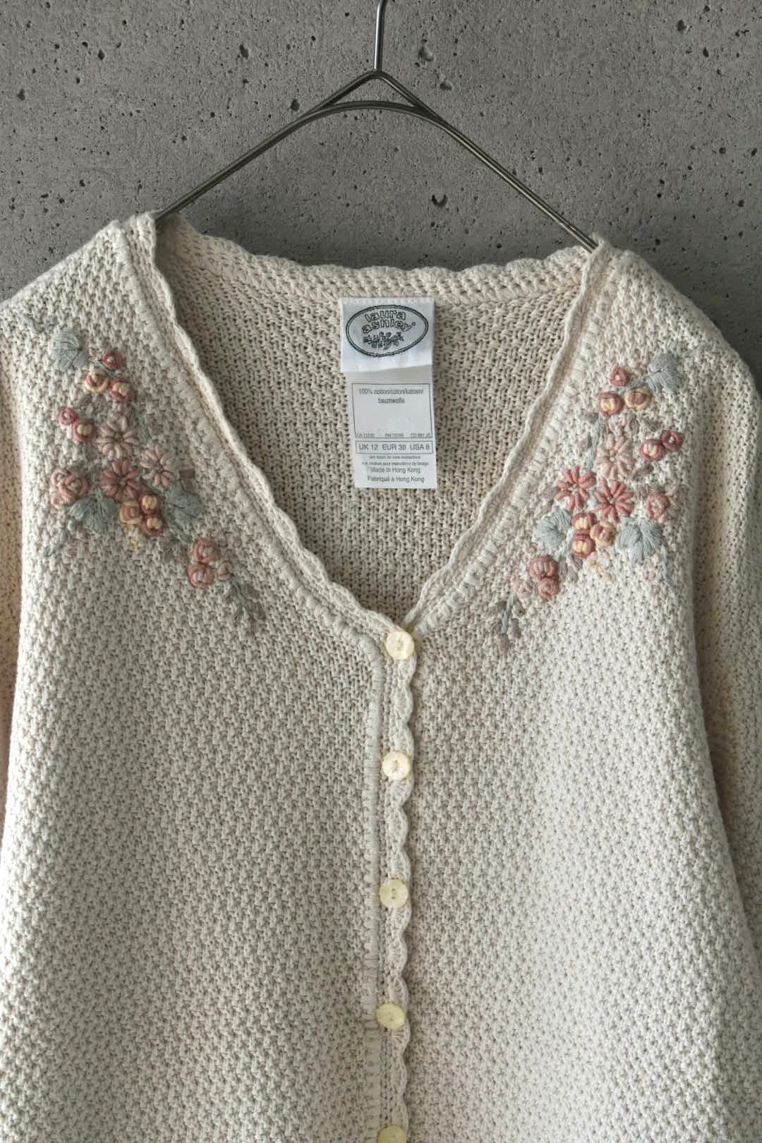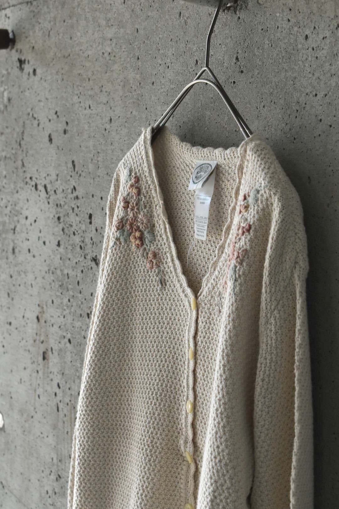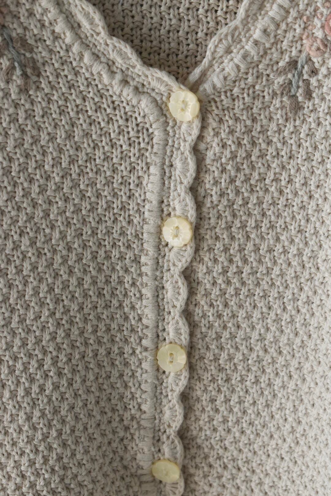 立体的なお花の刺繍が綺麗なコットンニットのカーディガンです。
