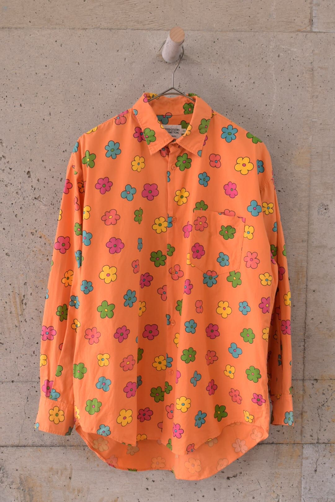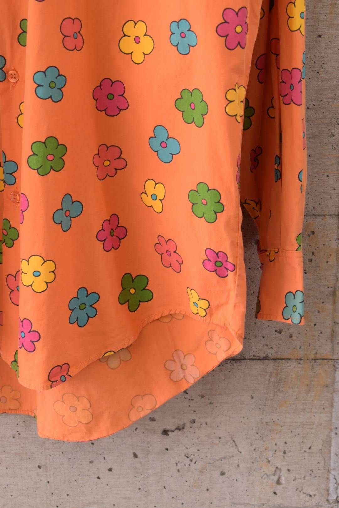 ポップなタッチの花柄がとても可愛らしいシャツです。