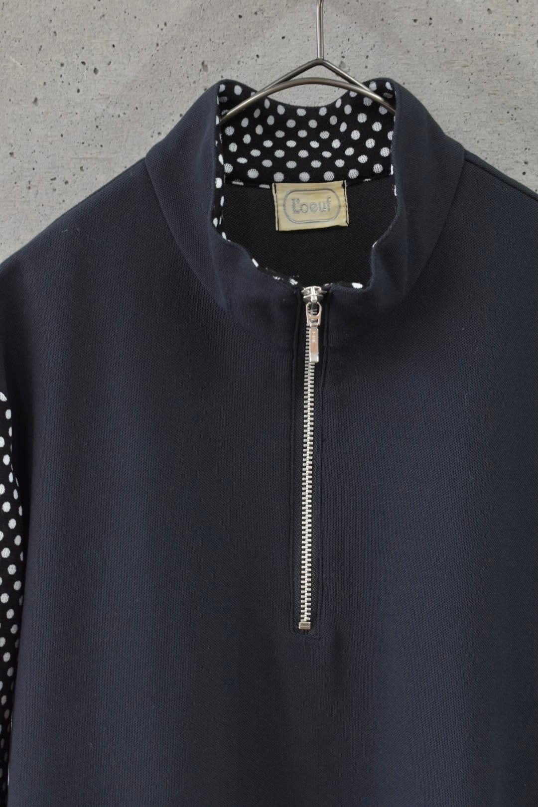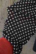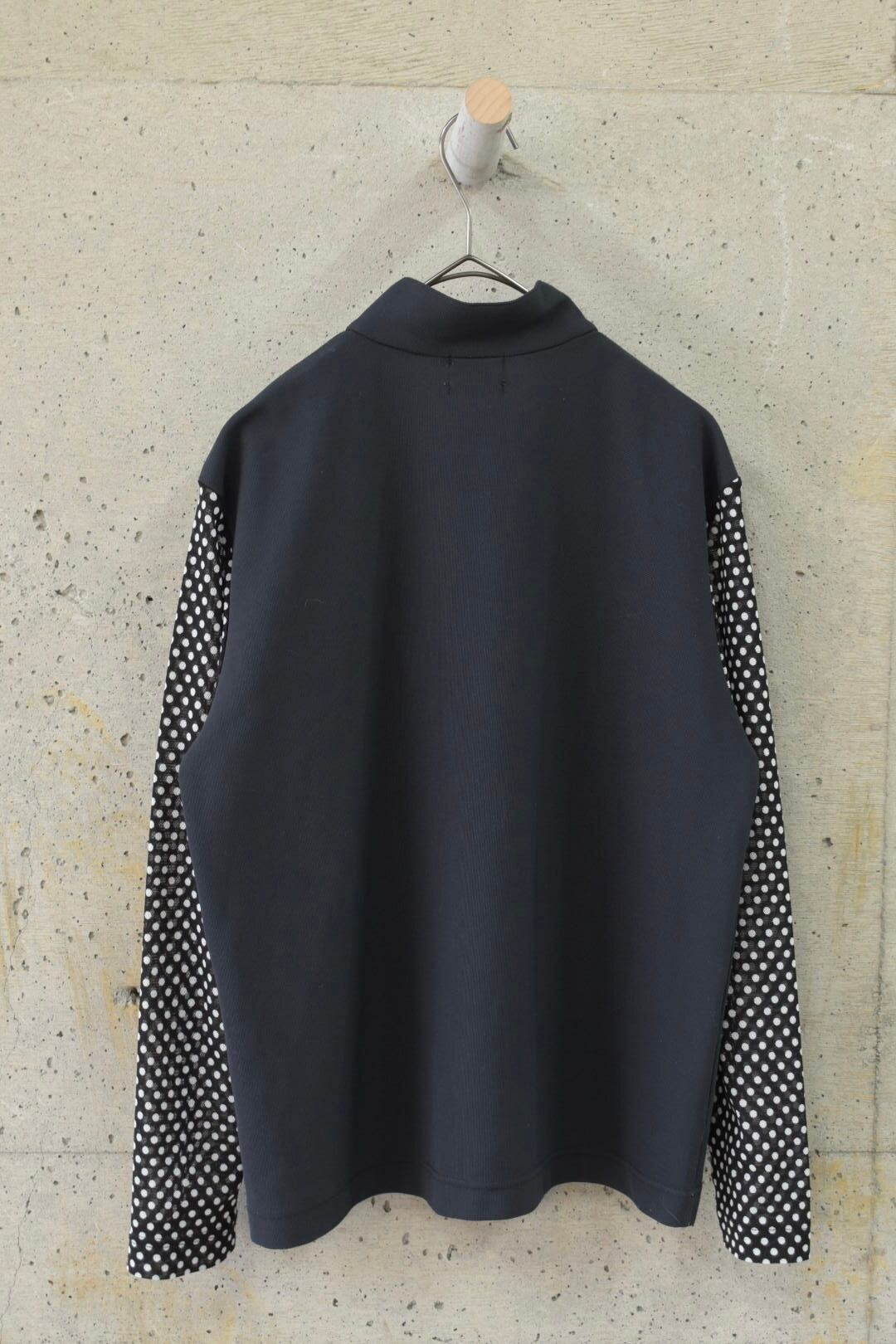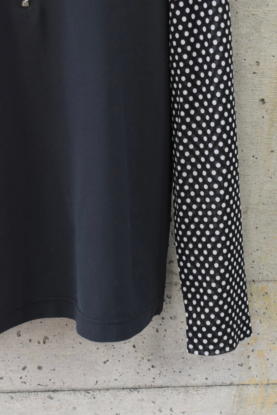 ボディはミニマルに、袖にはドットのメッシュ素材を切り替えたコントラストの効いた一着です。
