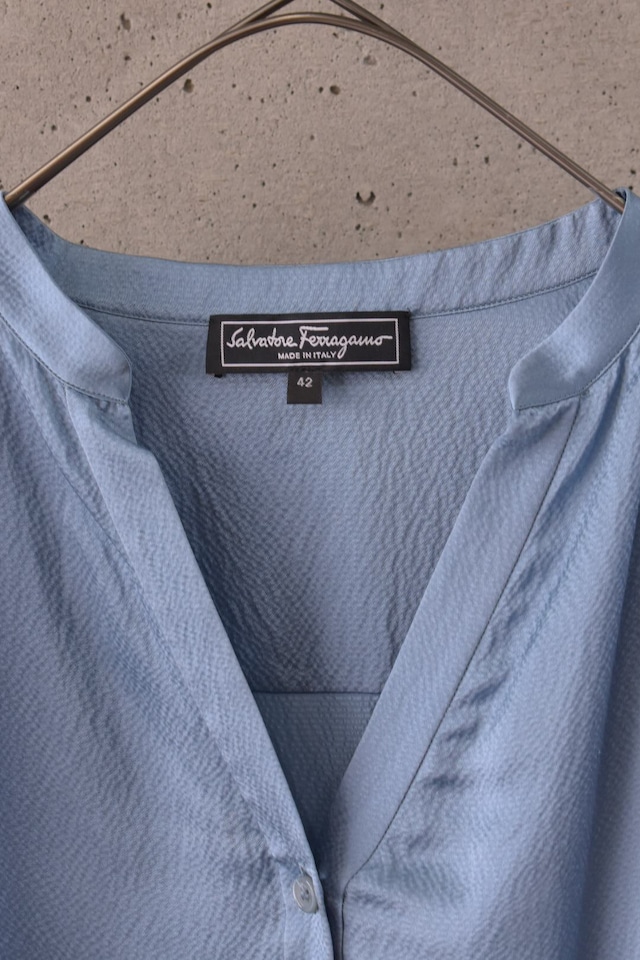 少し開いたネックラインも相まって、女性らしい柔らかさを感じられる一着です。