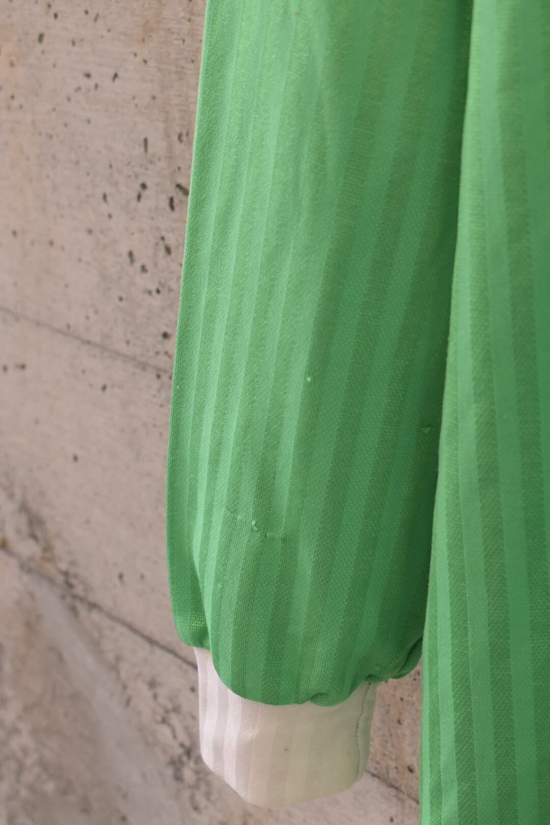 ストライプ織のボディは光の当たり方によって動きを見せ、スポーツウェアでありながらどこか気品があります。