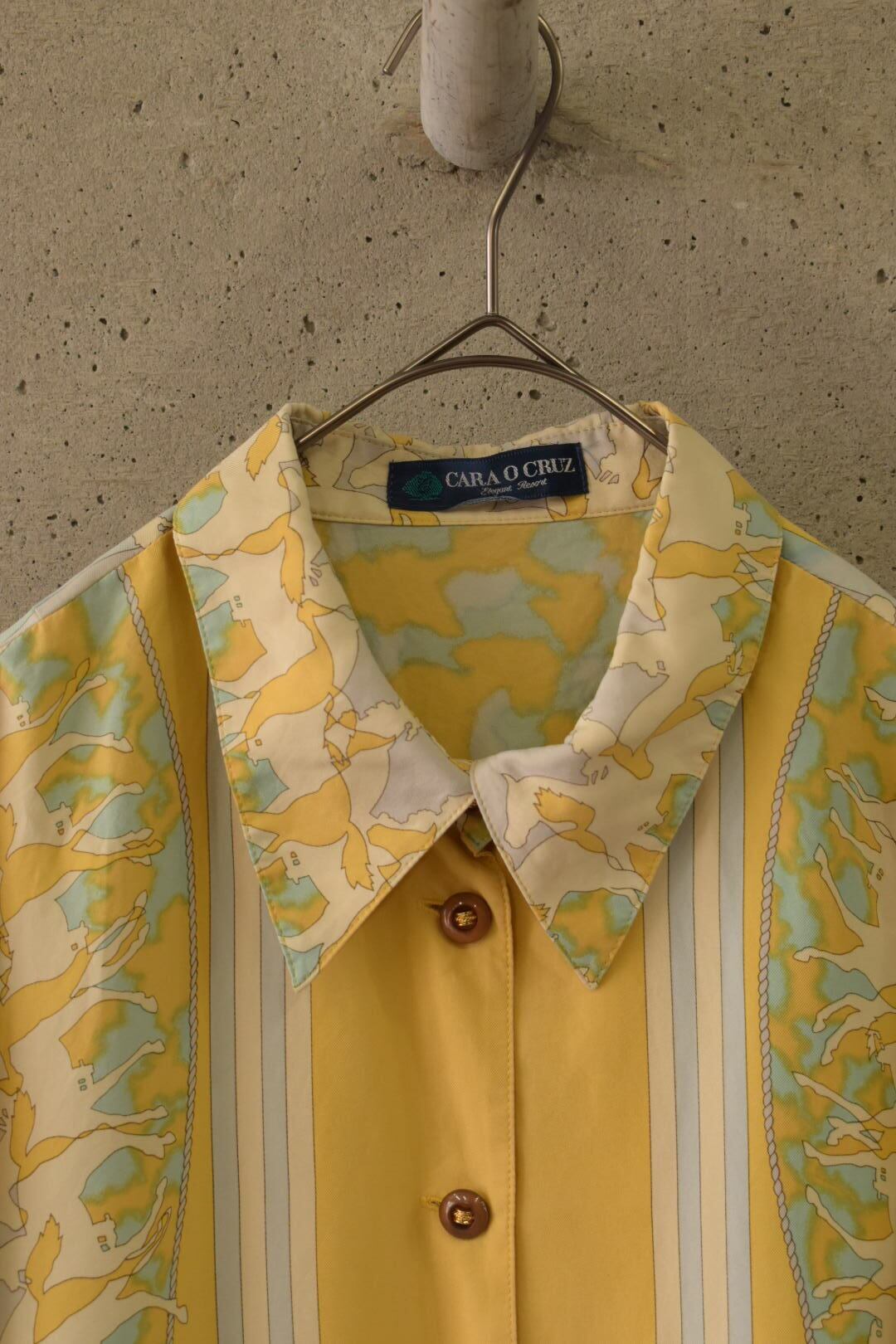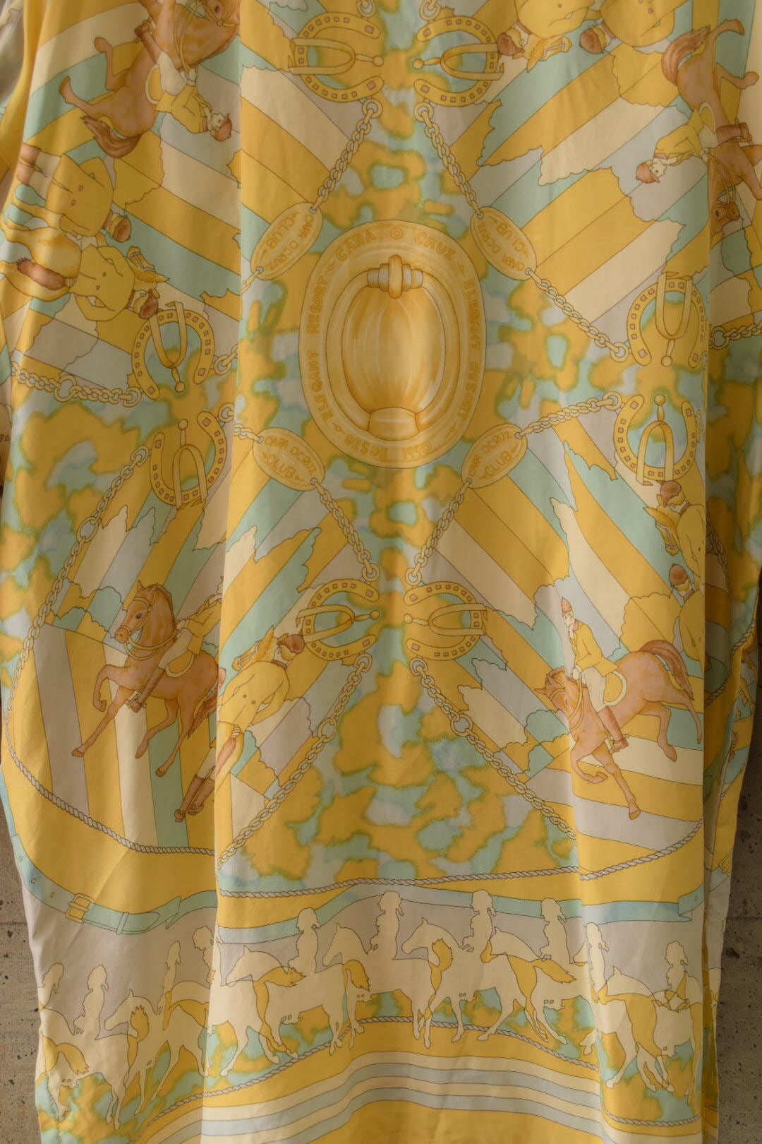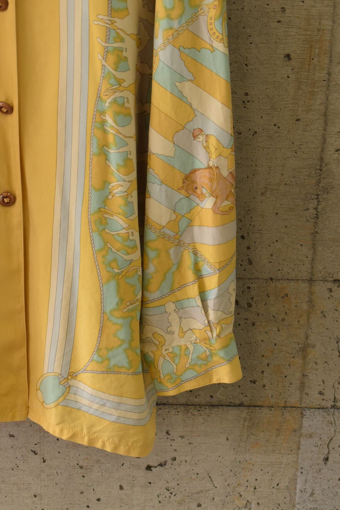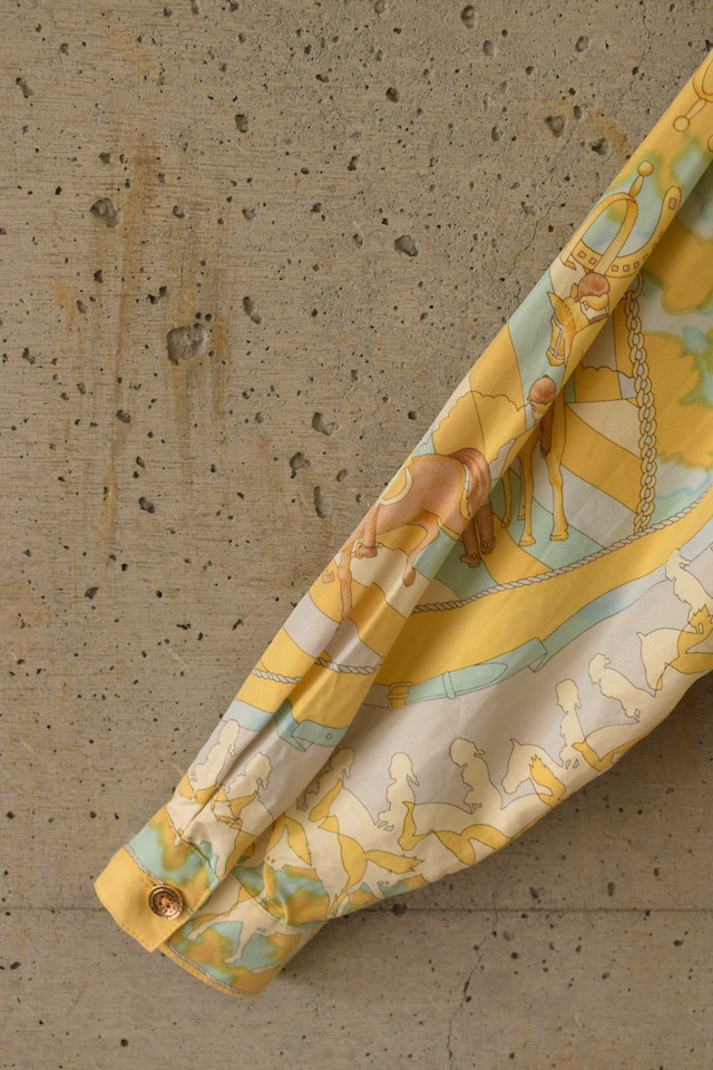 乗馬のモチーフが印象的な、シルクのブラウスです。