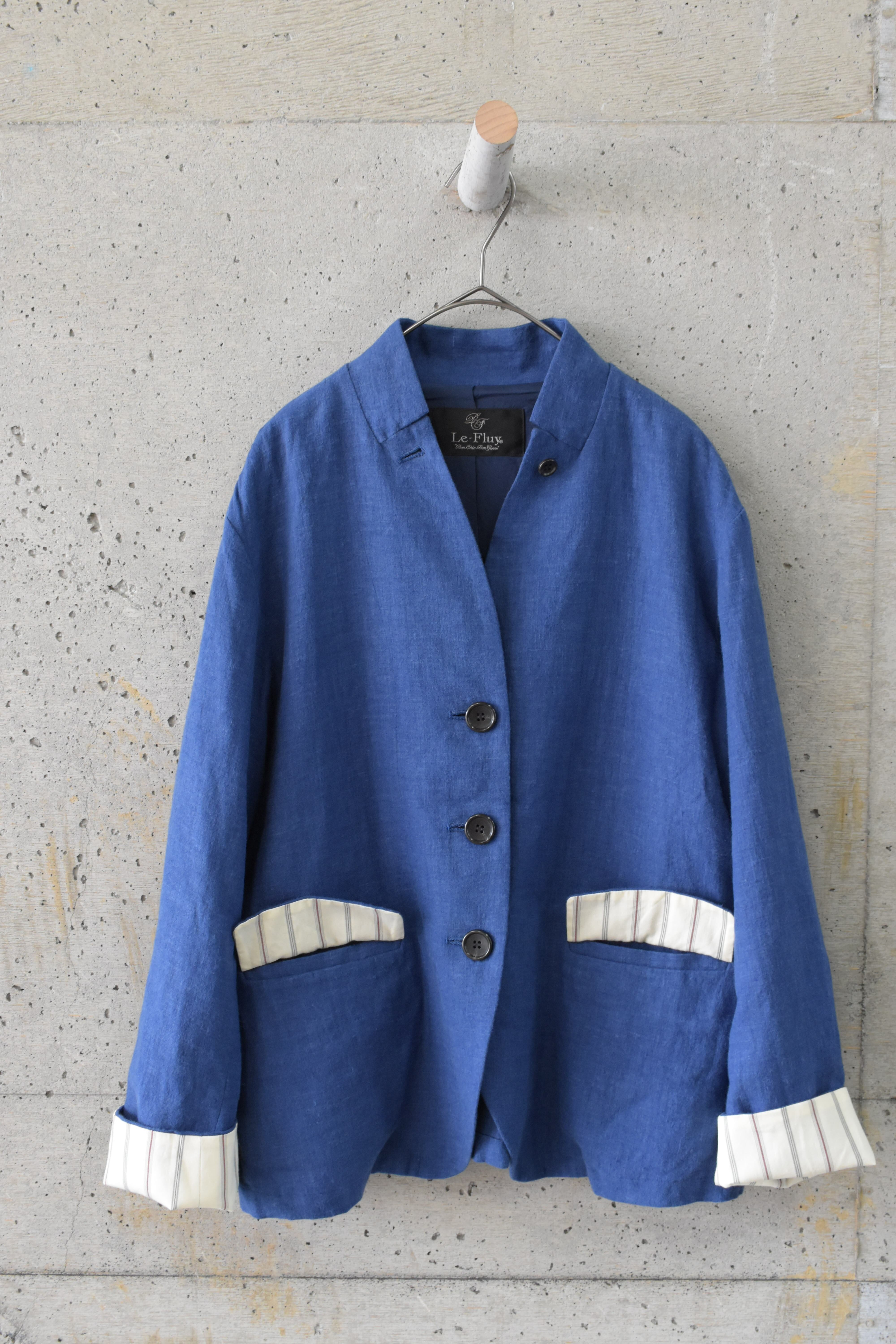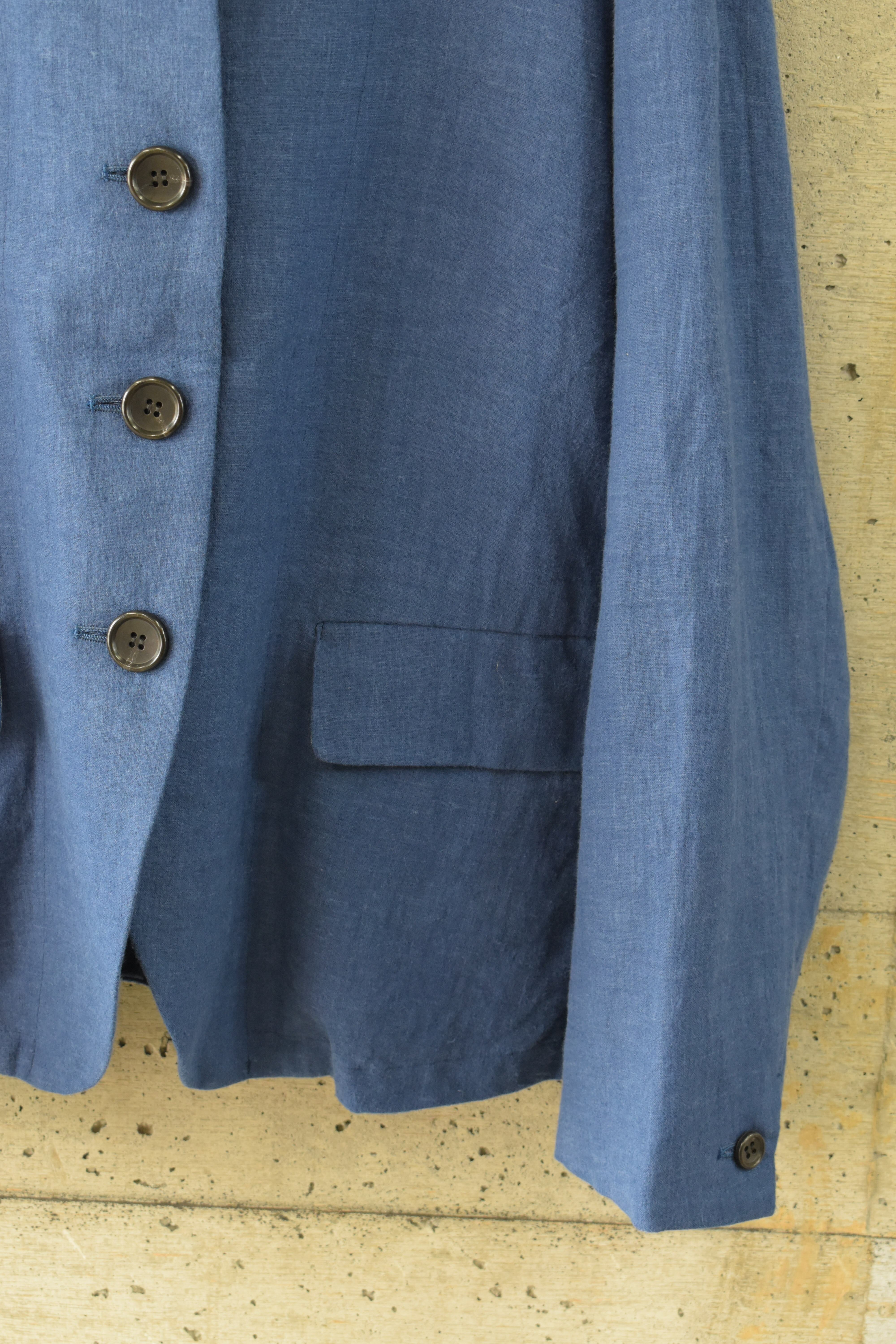 発色のきれいなブルーが印象的な、軽やかなリネンジャケットです。