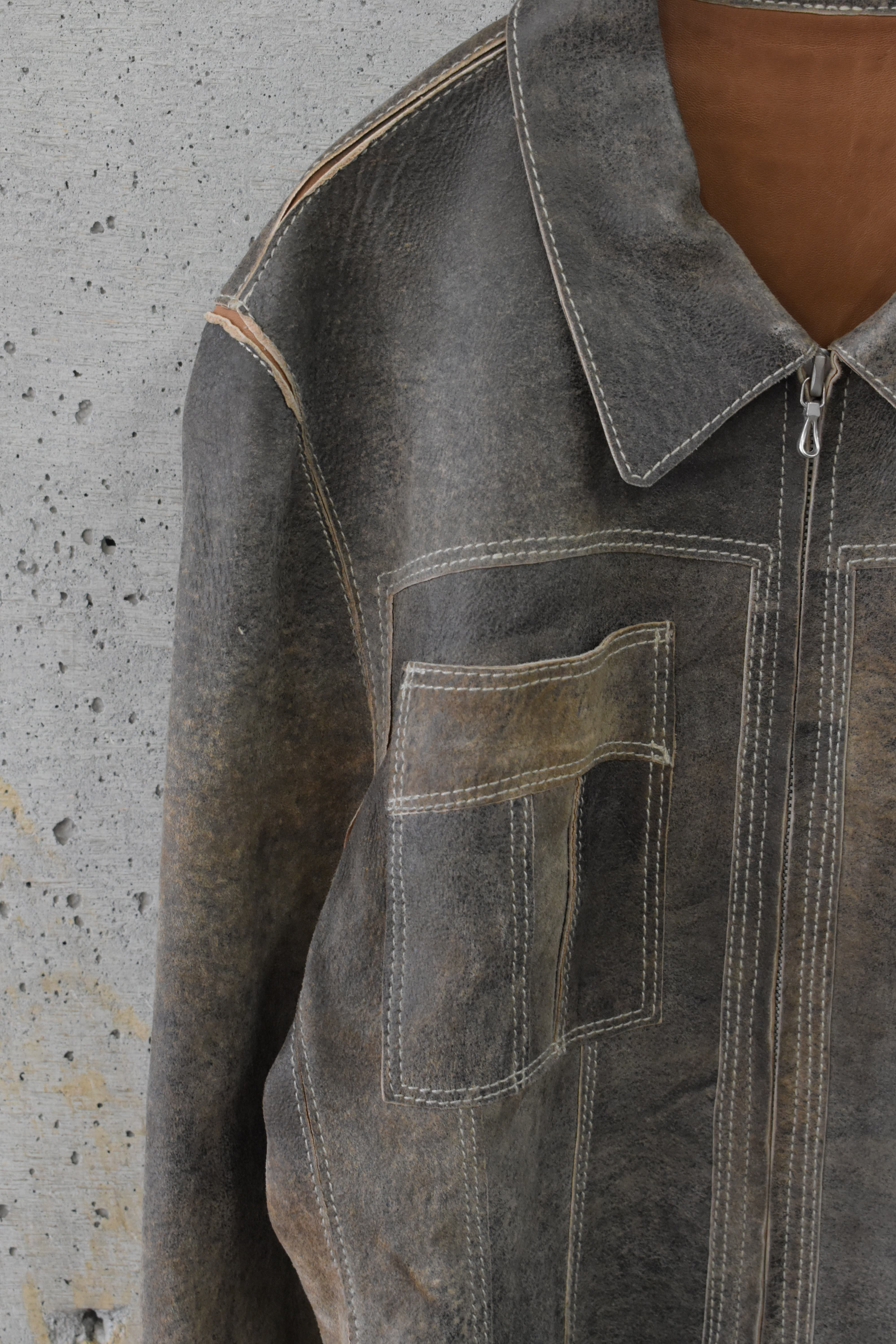 Double-zip leather trucker jacket