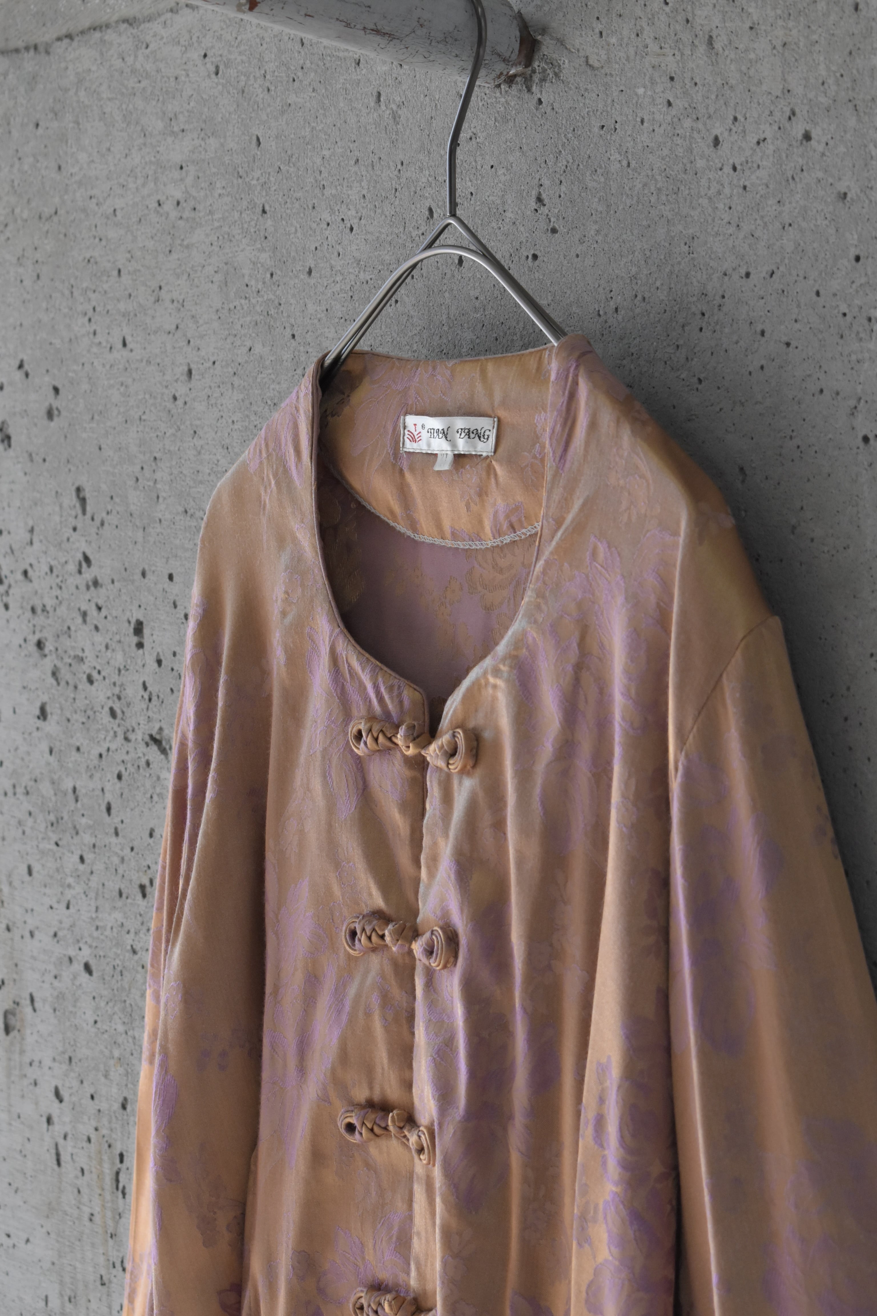 春らしい色味は華やかで同布で作られたチャイナボタンとの相性もよく、古着でありながら今っぽさの漂うデザインとなっています。