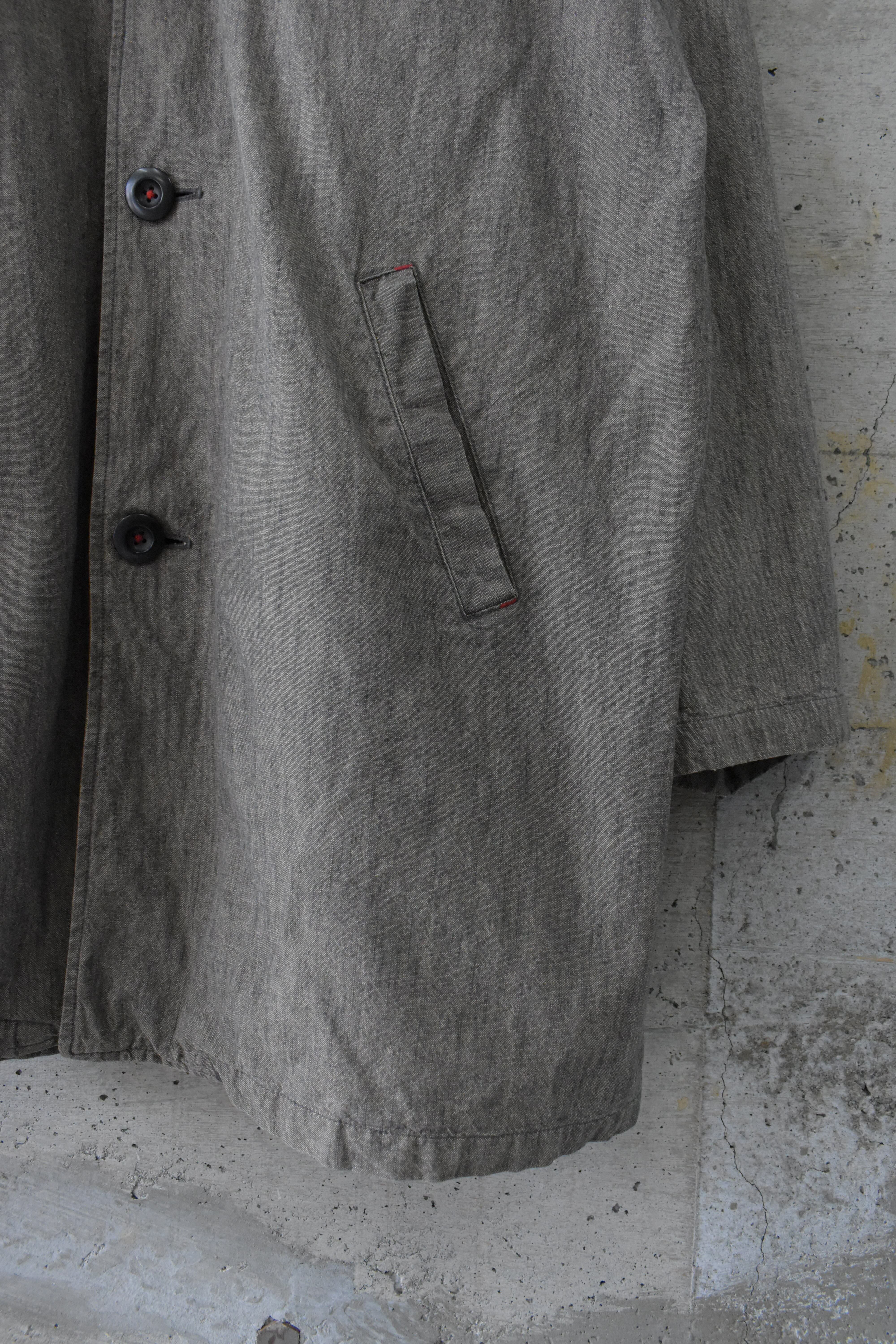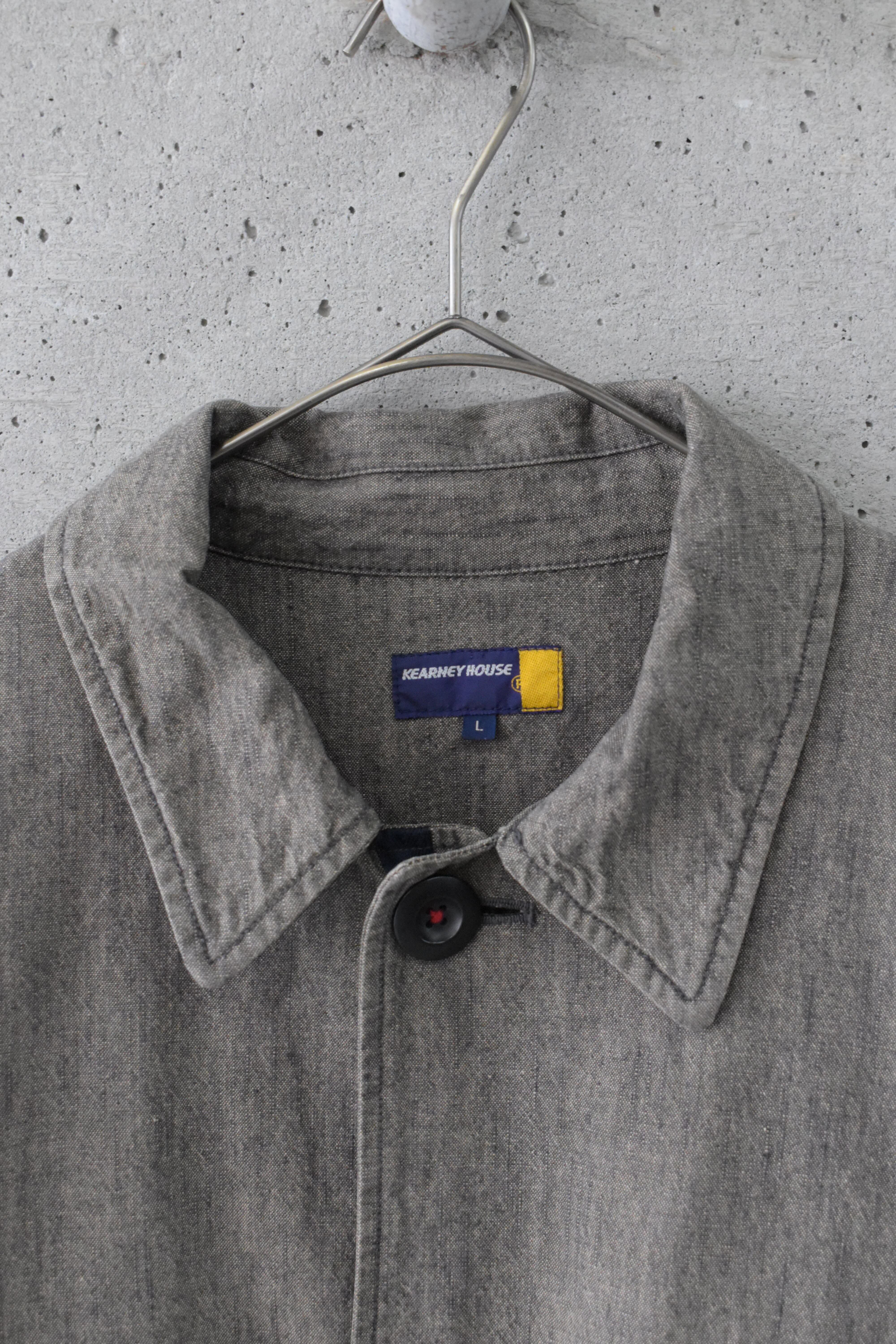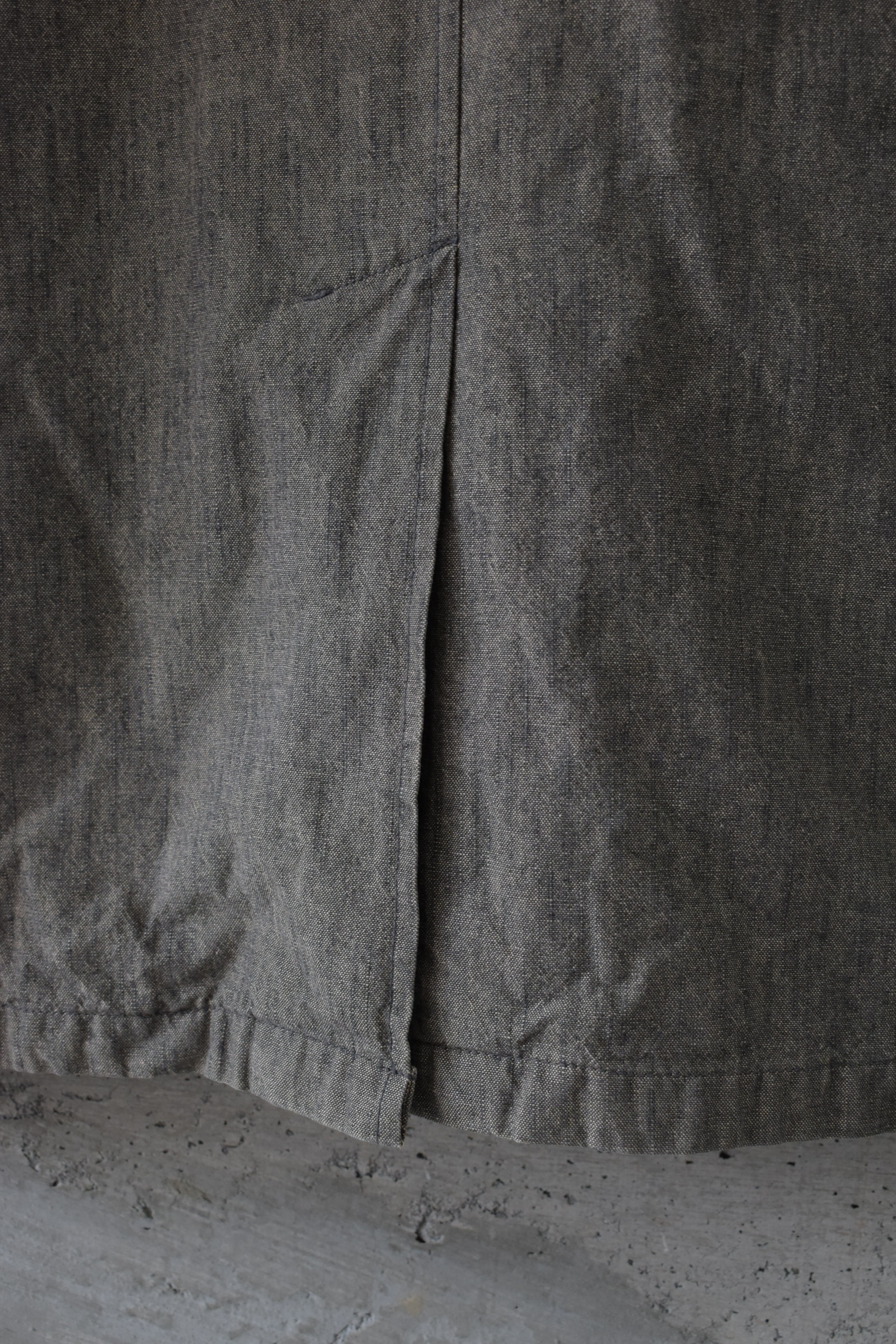 赤糸で留めた大きめのボタンと、ポケット周りのステッチがポイントになっていて、