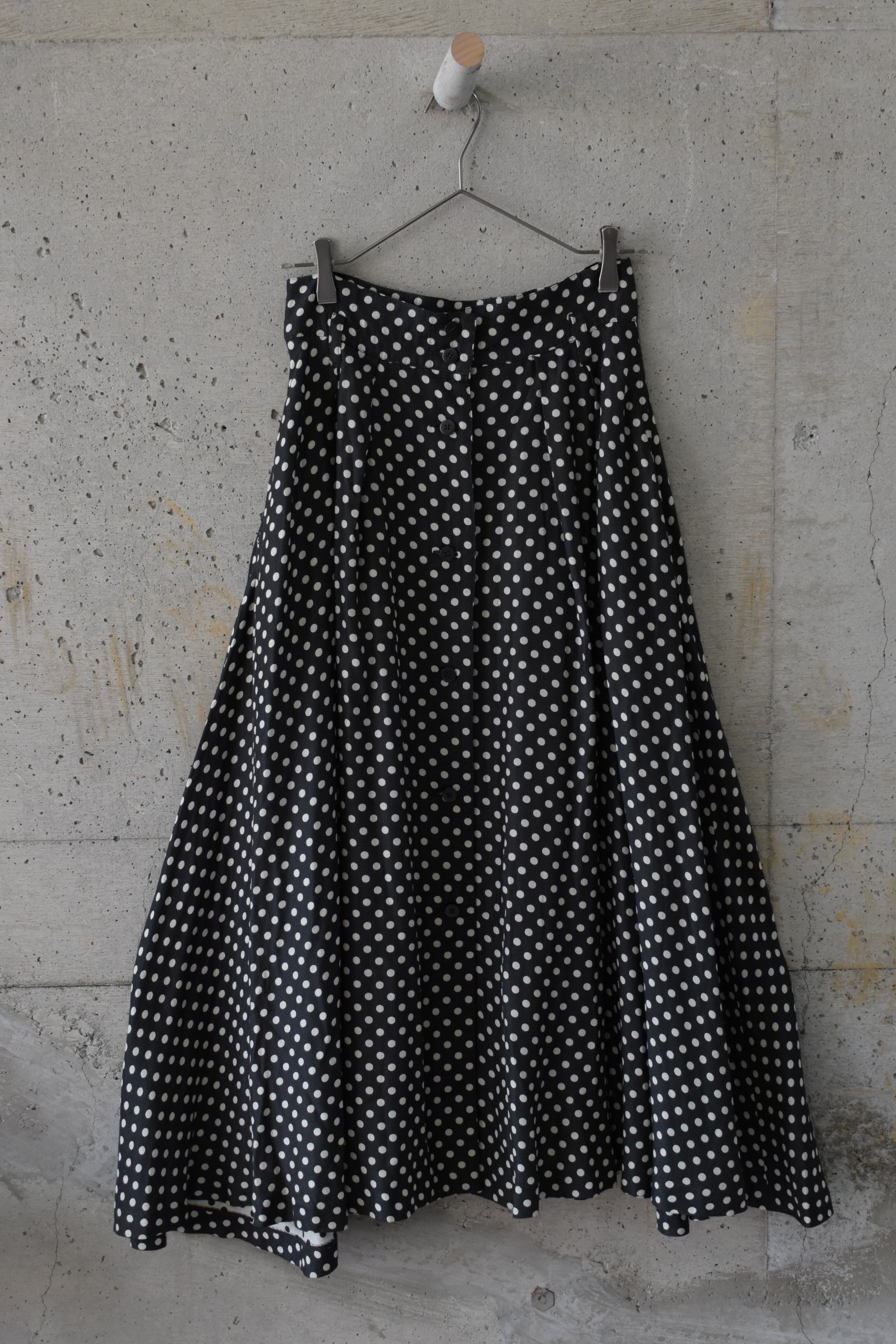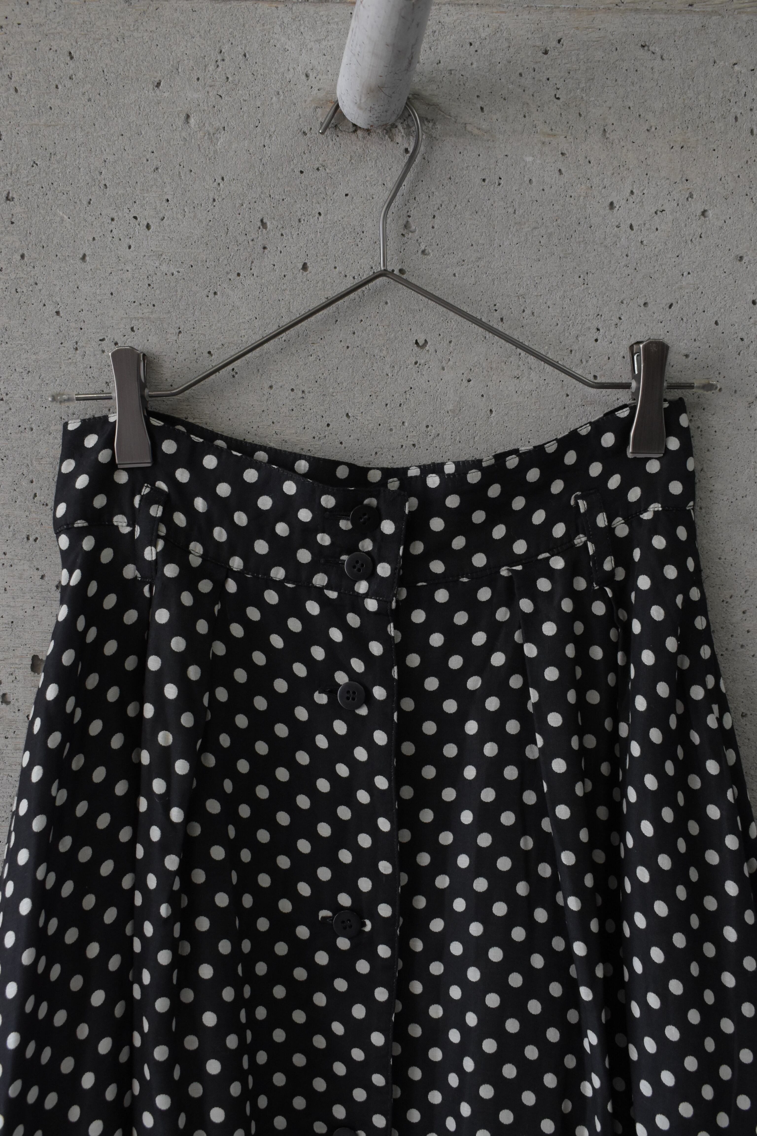 ドット柄が目を引く、存在感のあるフレアスカートです。