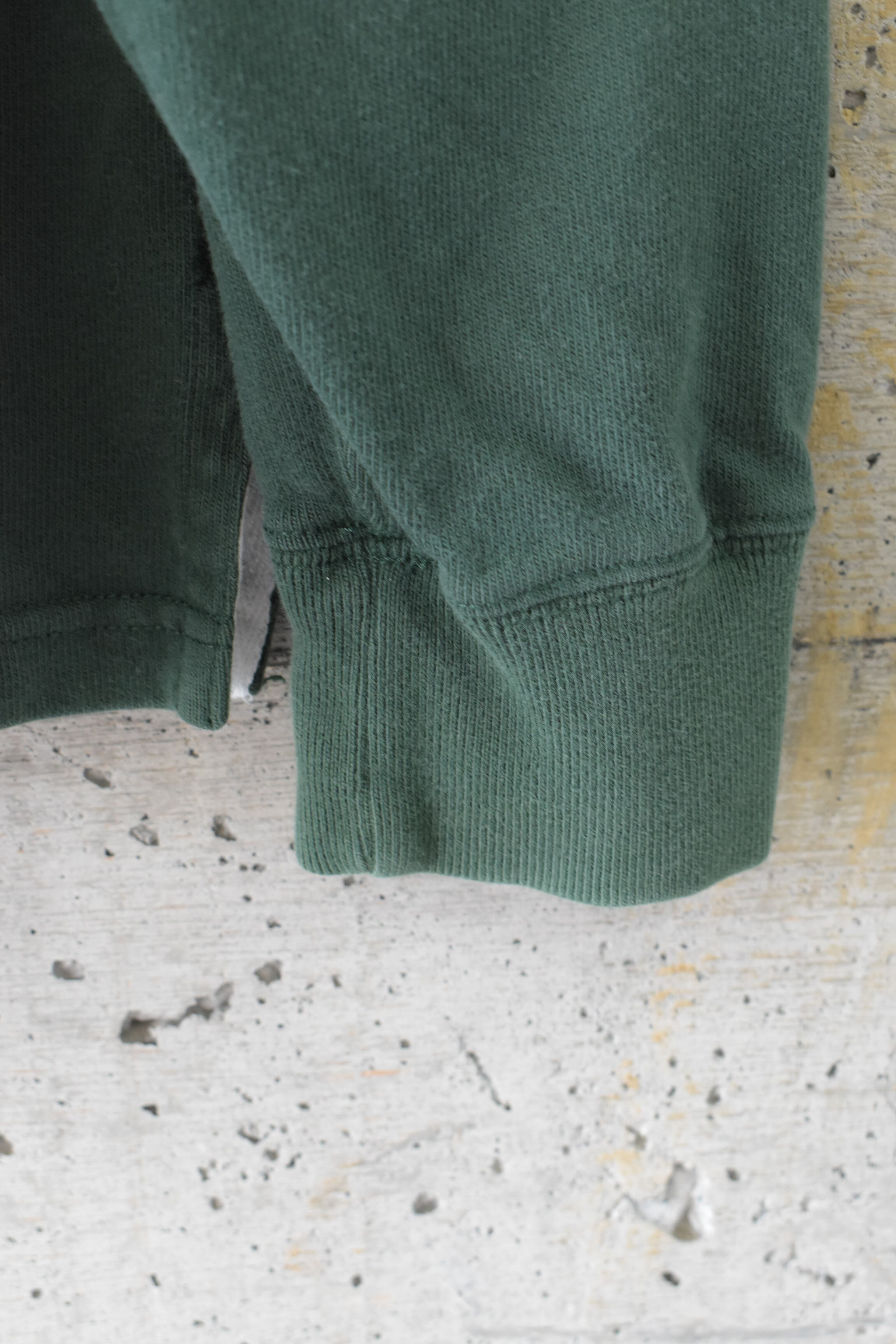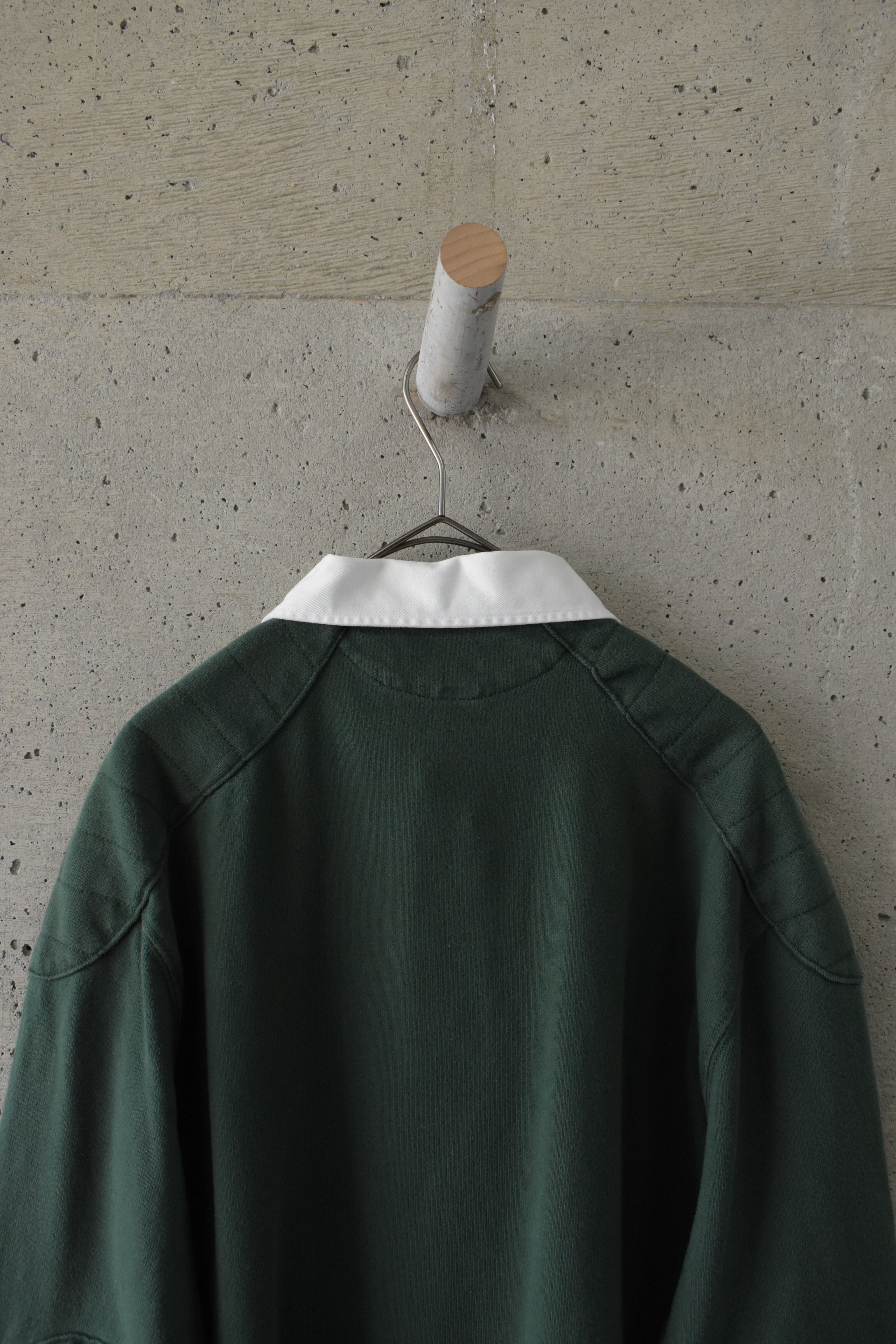 Green rugby shirt with elbow and shoulder patches