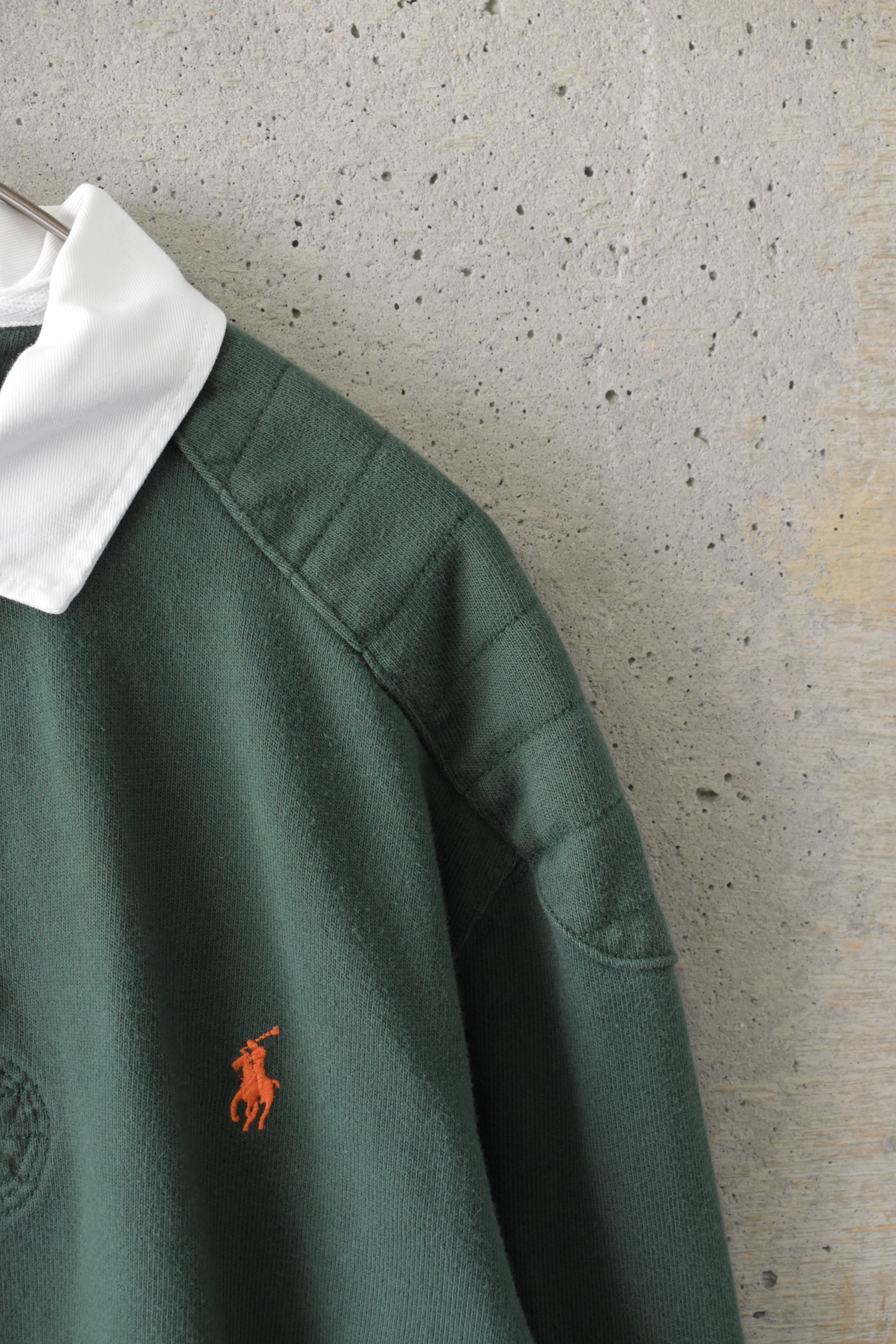 ショルダーパッチとエルボーパッチがアクセントになったラルフローレンのラガーシャツです。