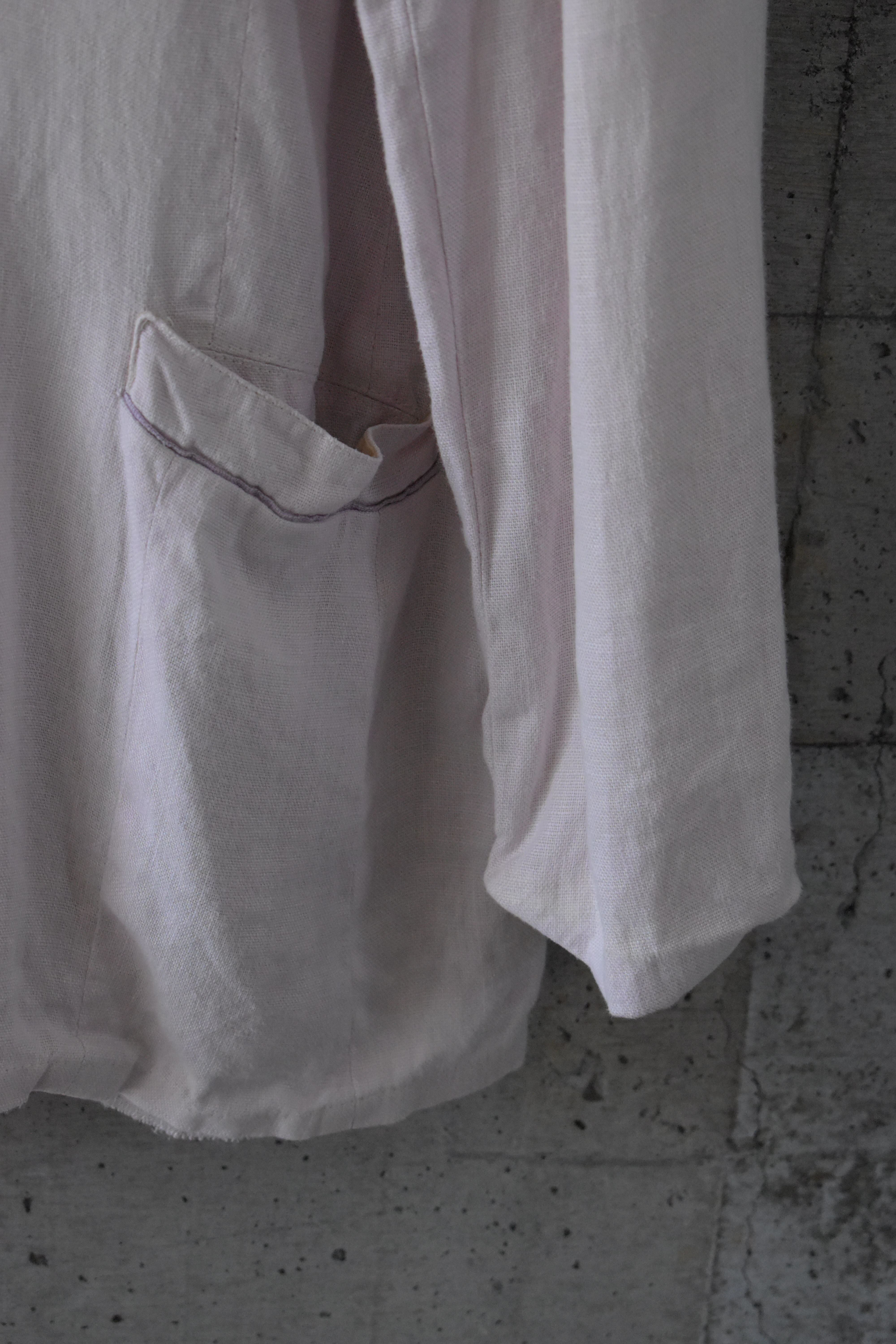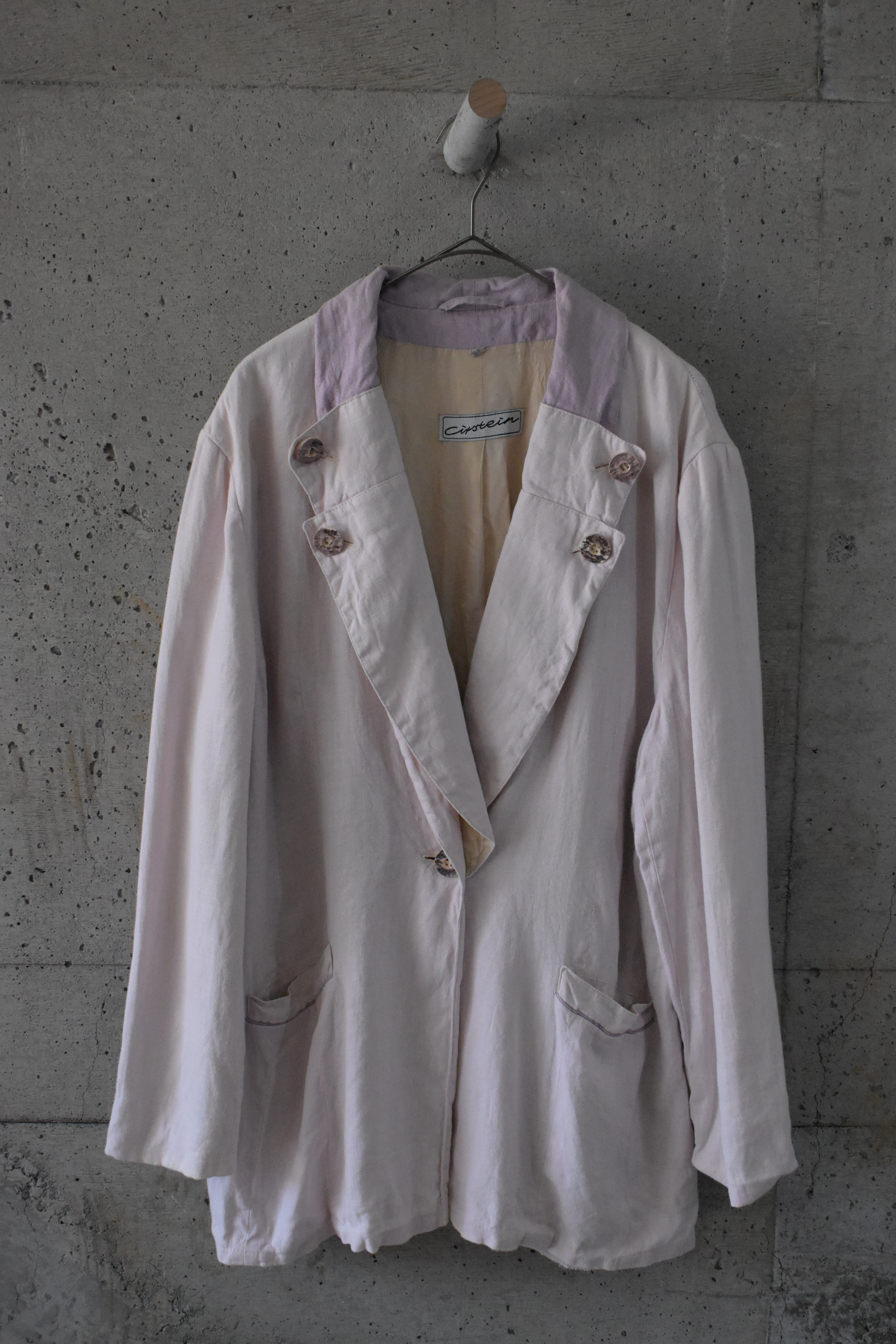 ゆったりとしたラペルや前立ての重なり方に特徴があり、一般的なジャケットとは少し異なるバランスで仕立てられています。