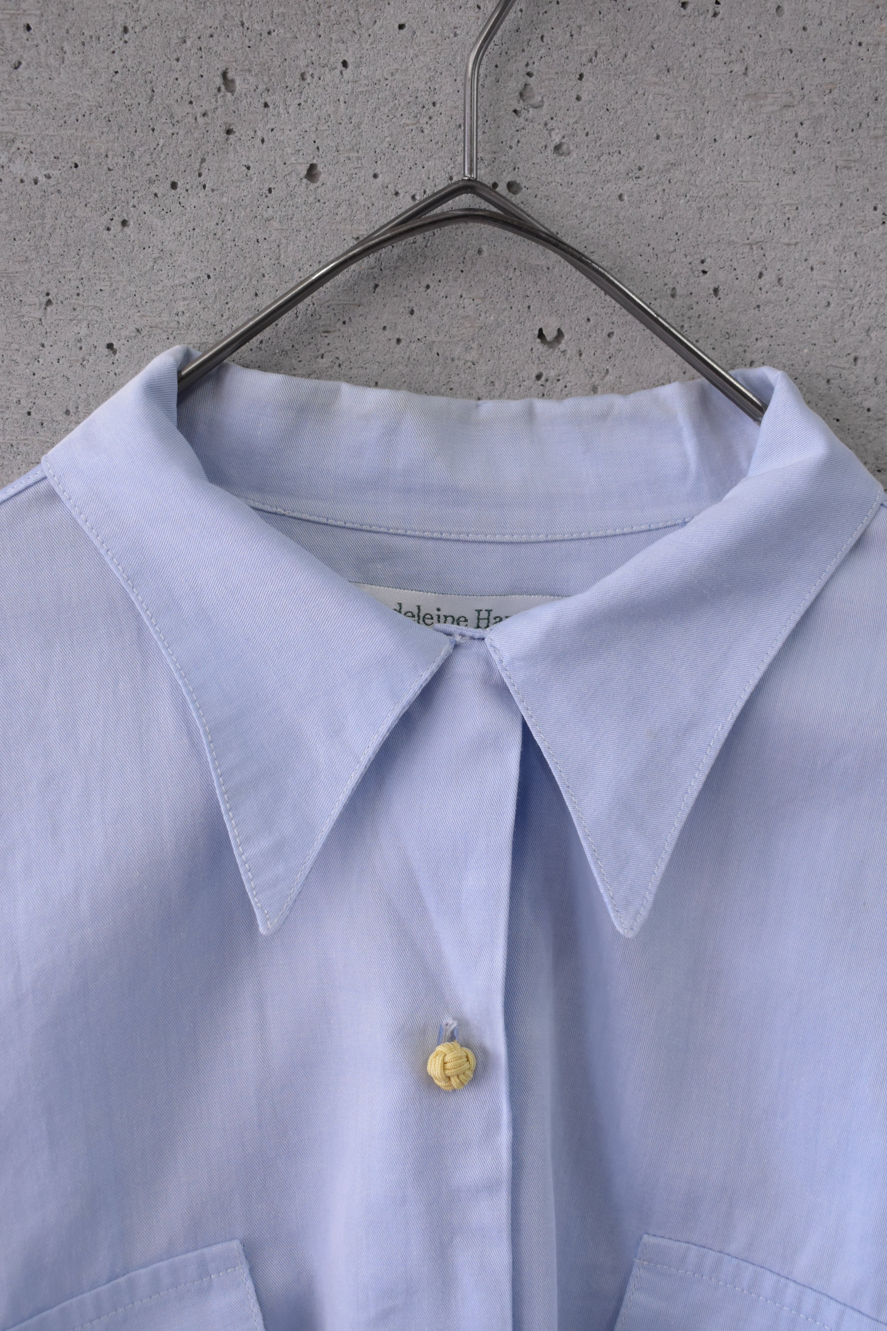 シンプルなデザインにノットボタンが印象的なシャツです。