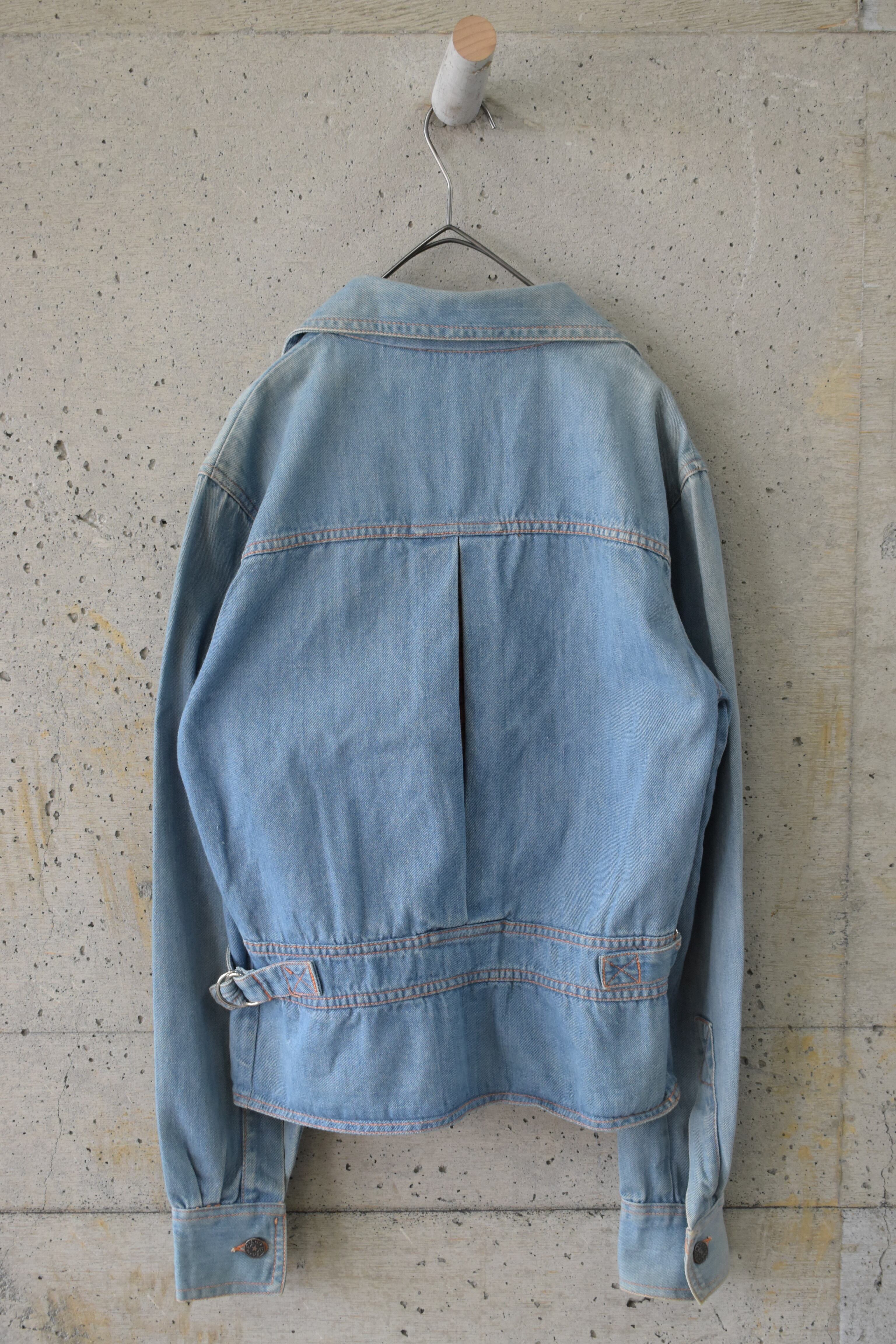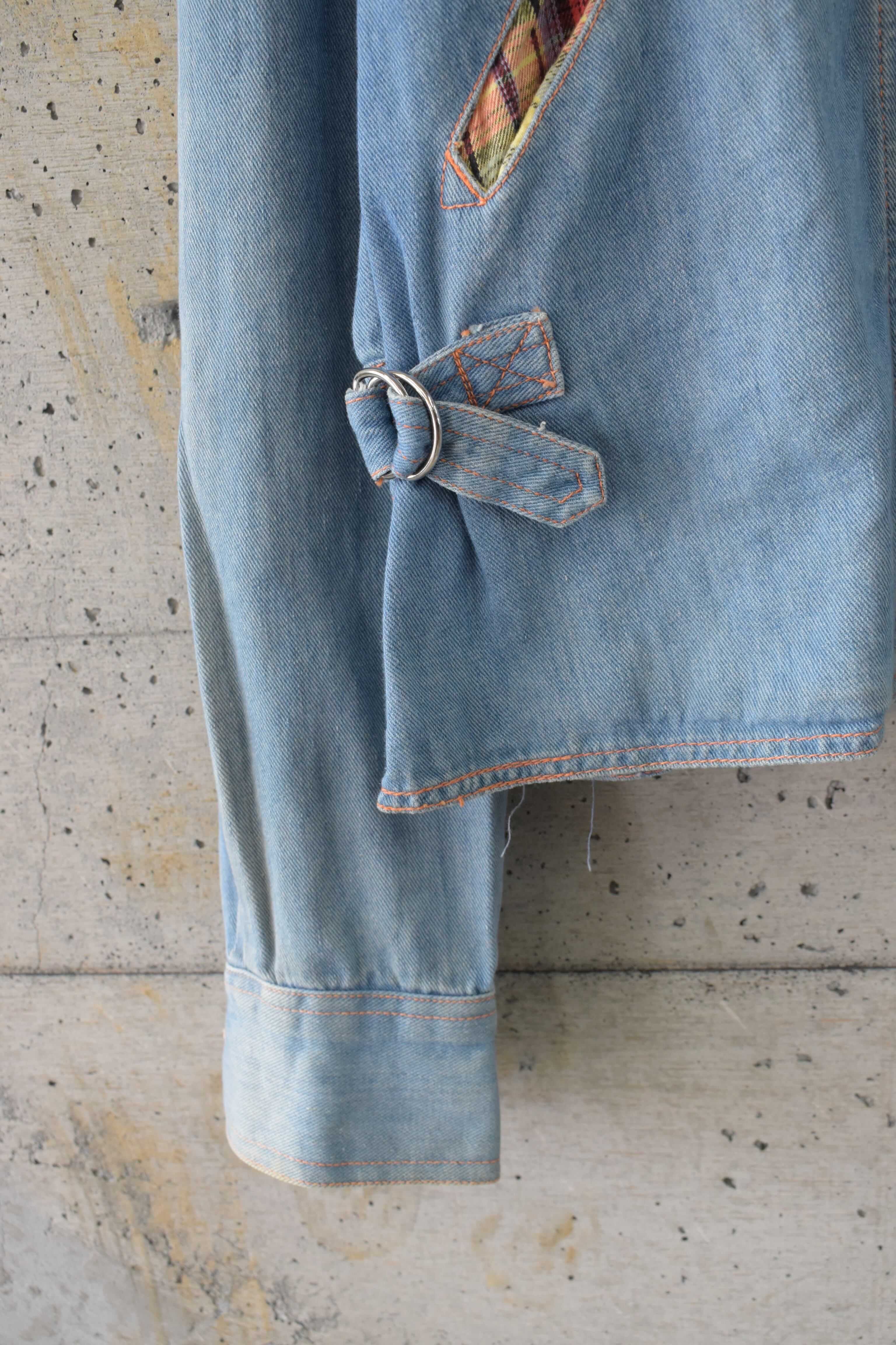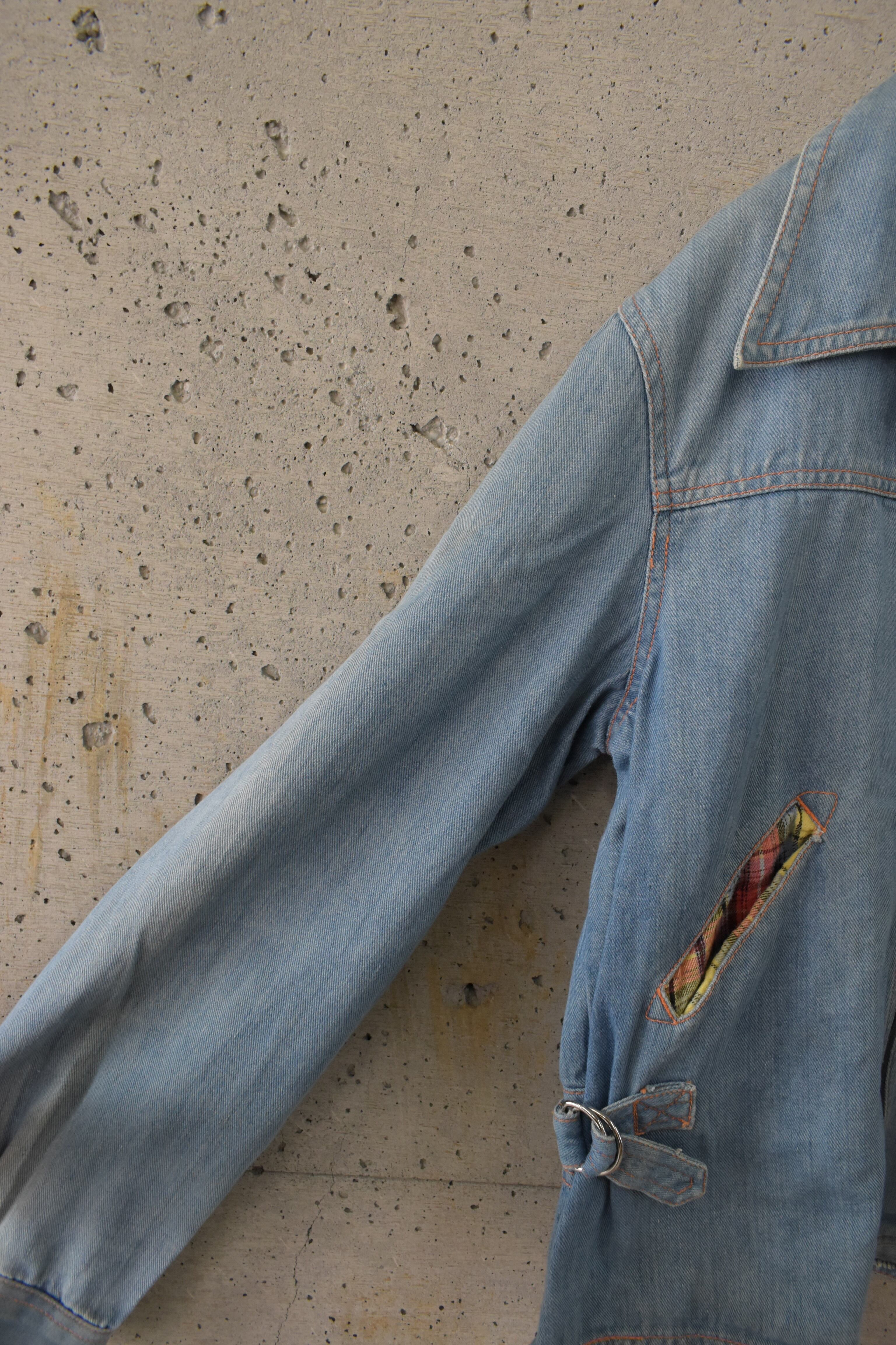 ポケットや背中のアクションプリーツ裏地にチェックを配した、さりげなくデザインの効いたデニムジャケット。