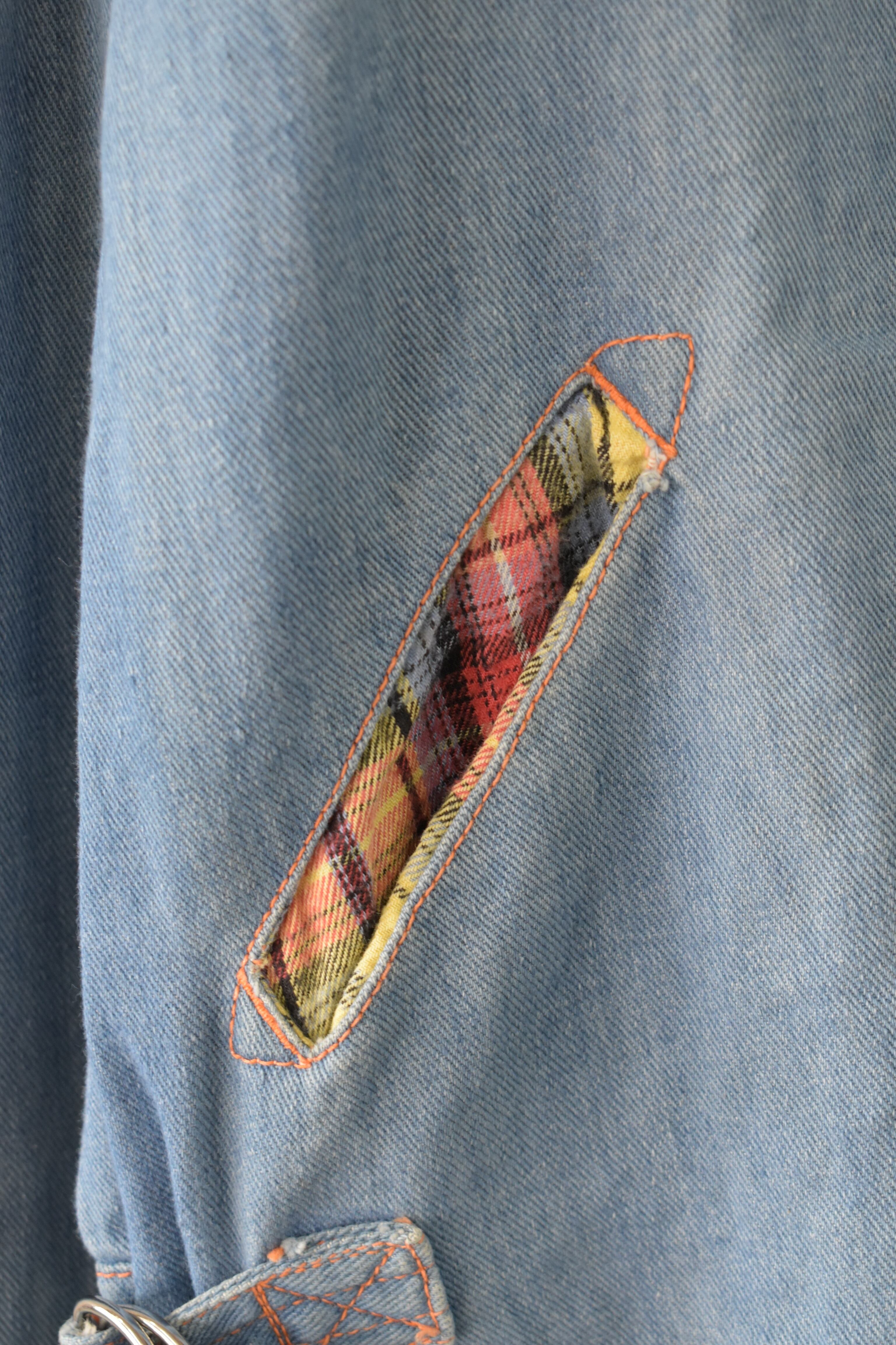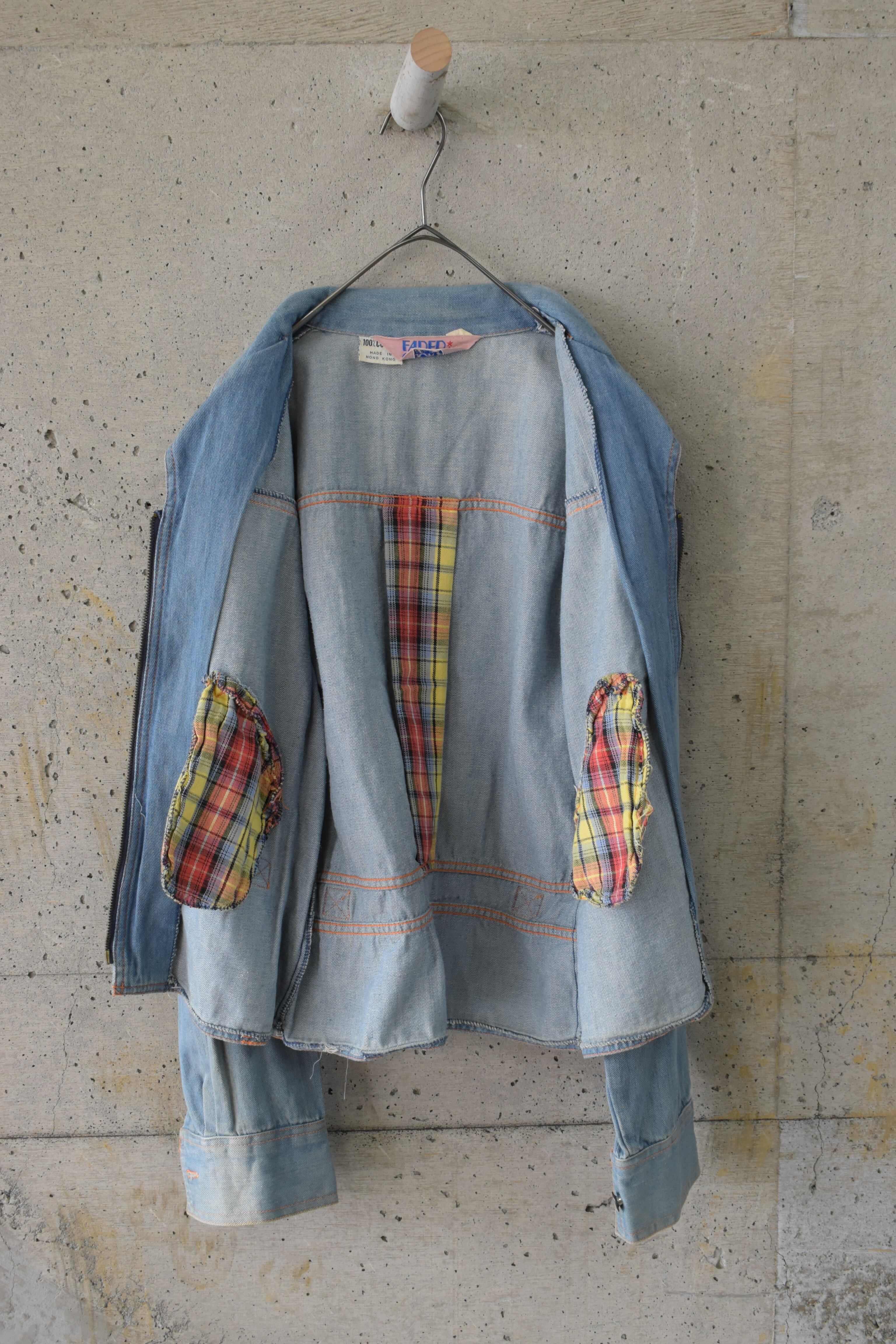 Denim jacket with checkered lining