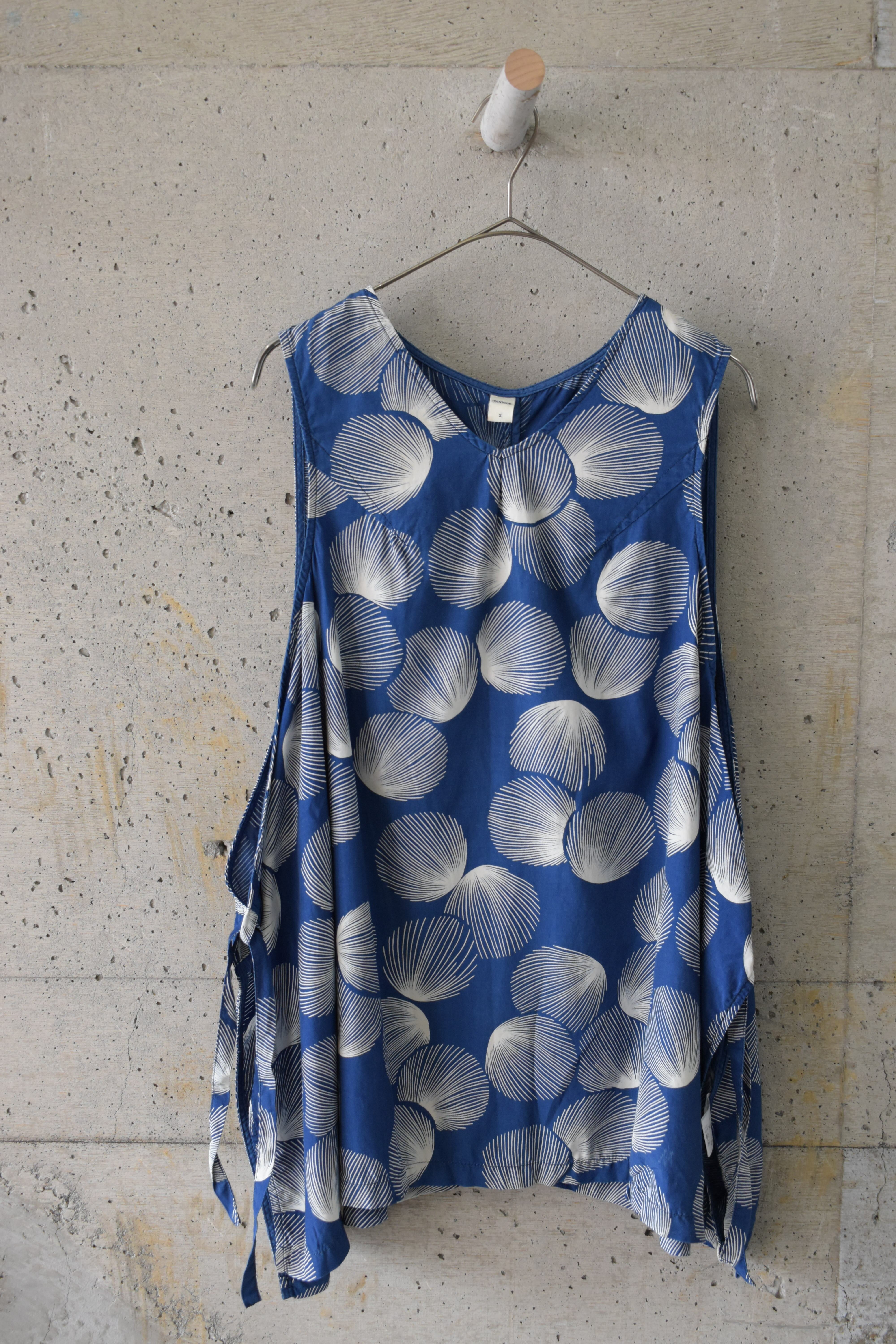 サイドリボンが印象的な、ゆったりとしたノースリーブトップスです。