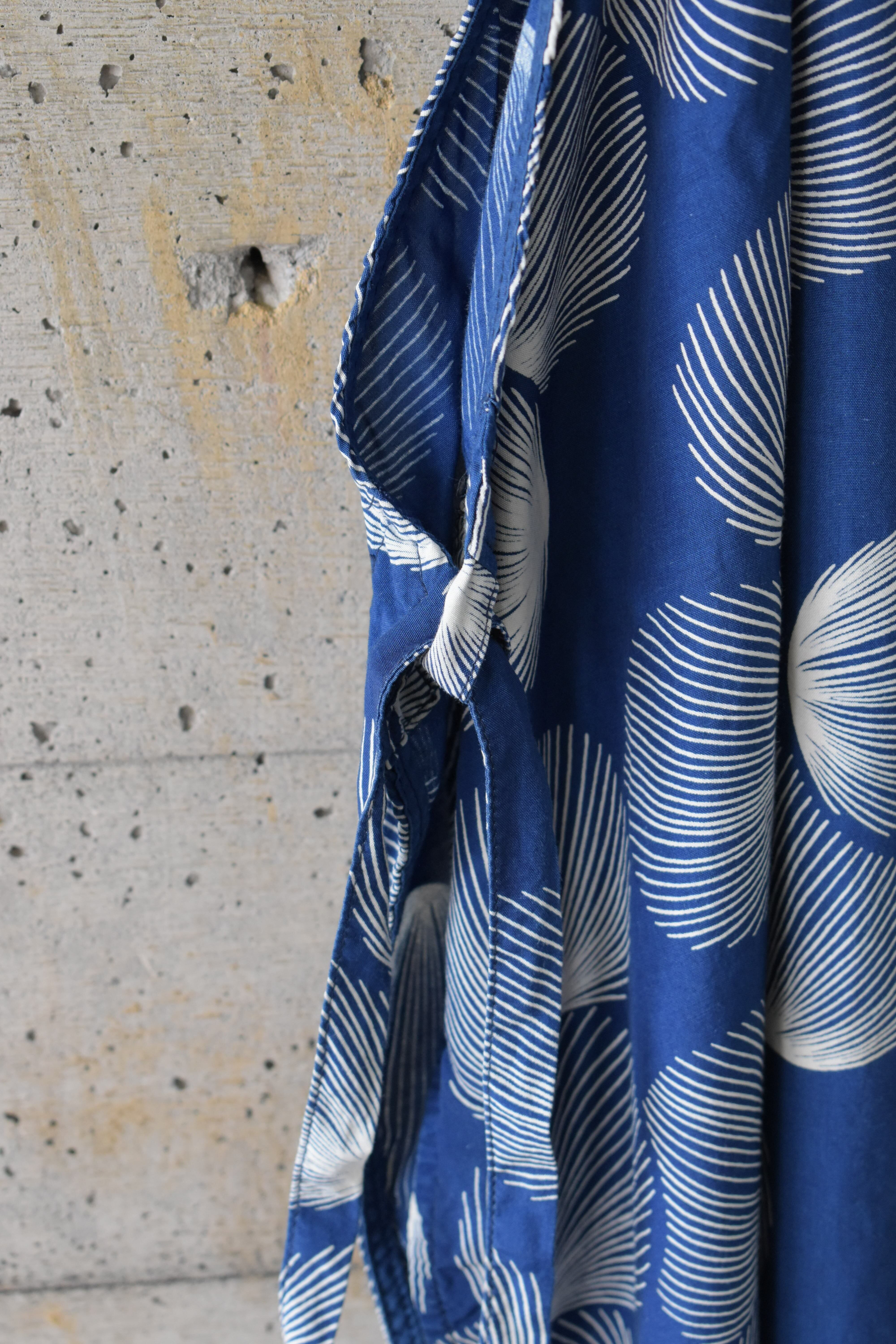 鮮やかなブルーに白の柄が映え、着用するだけでコーディネートの主役になります。