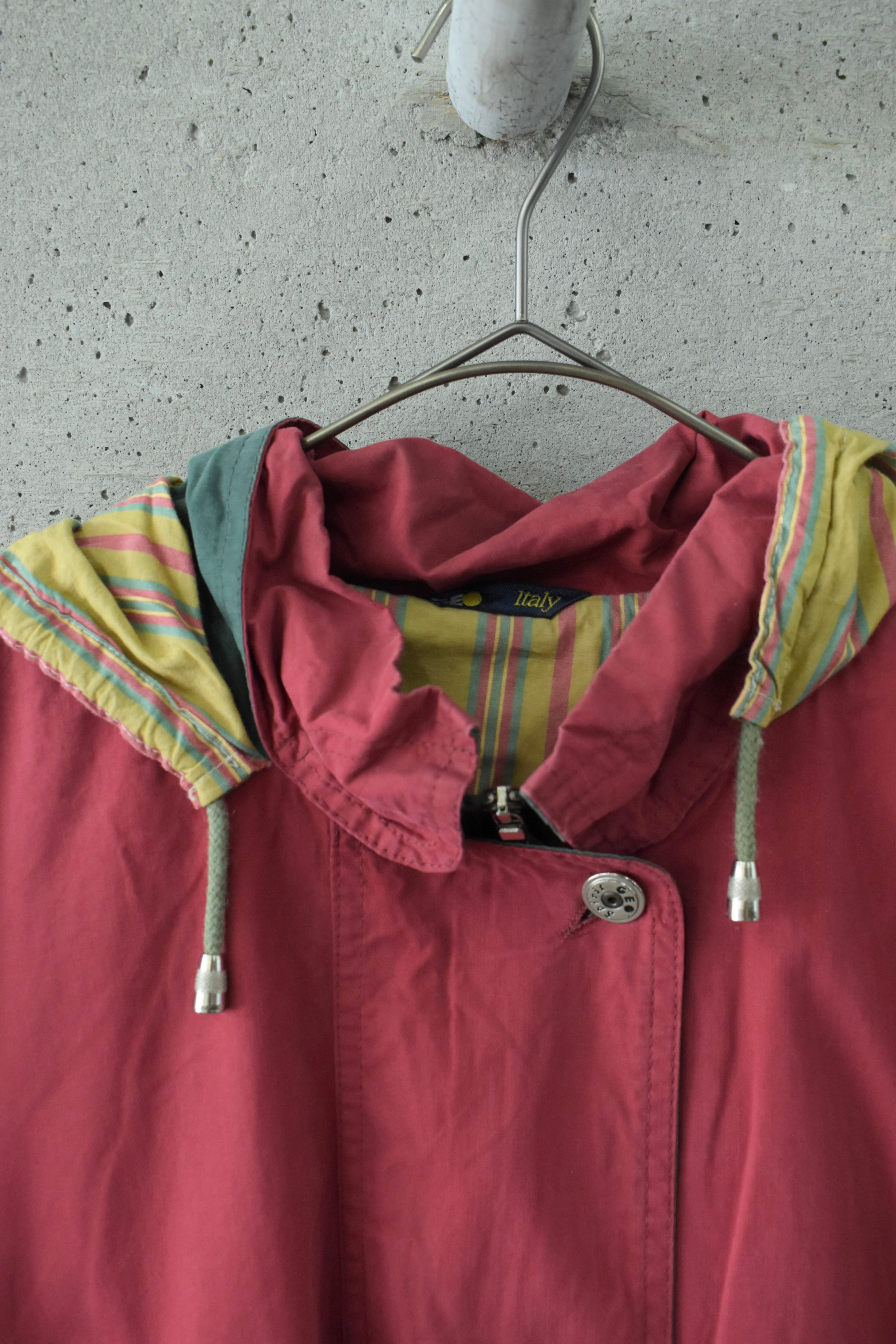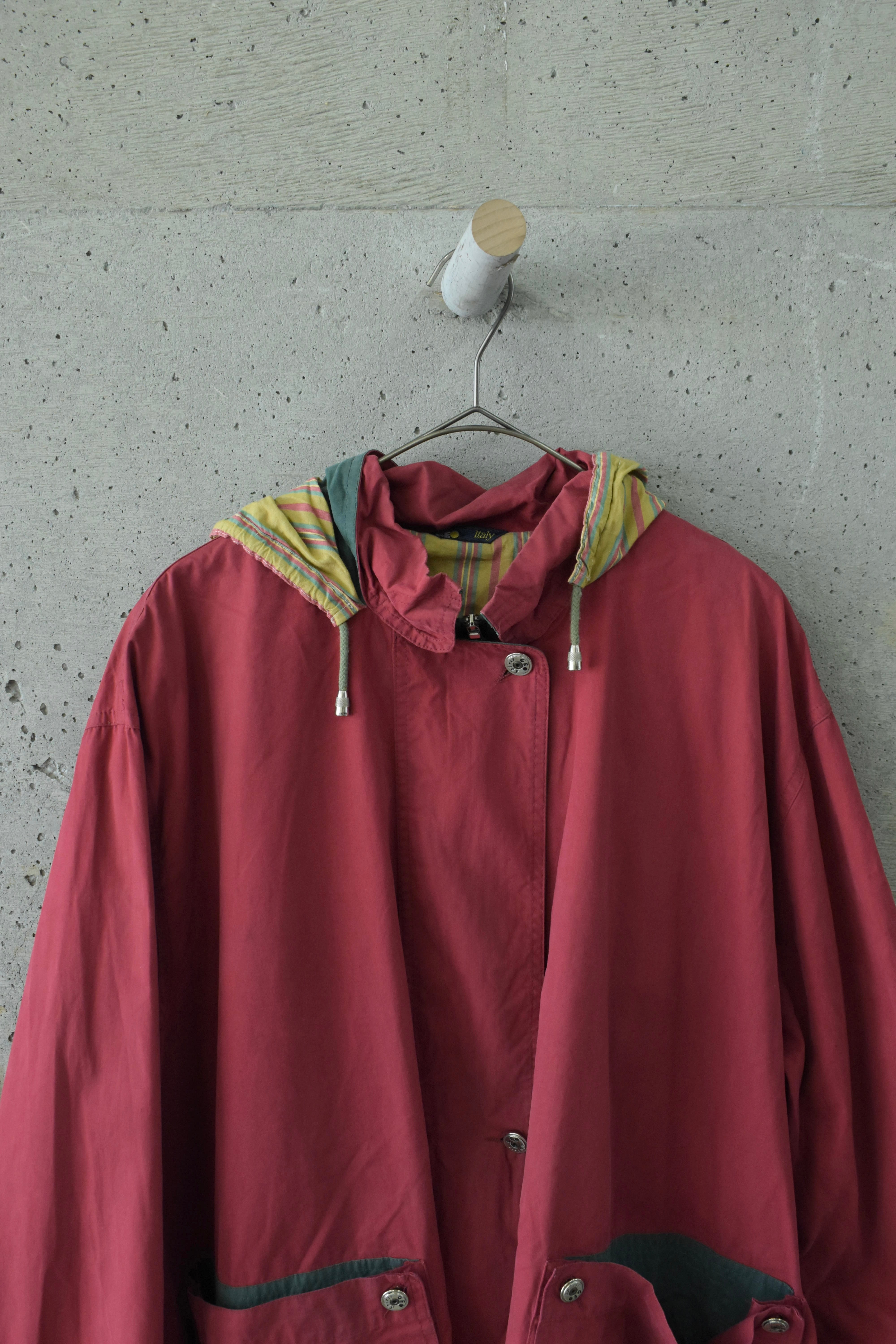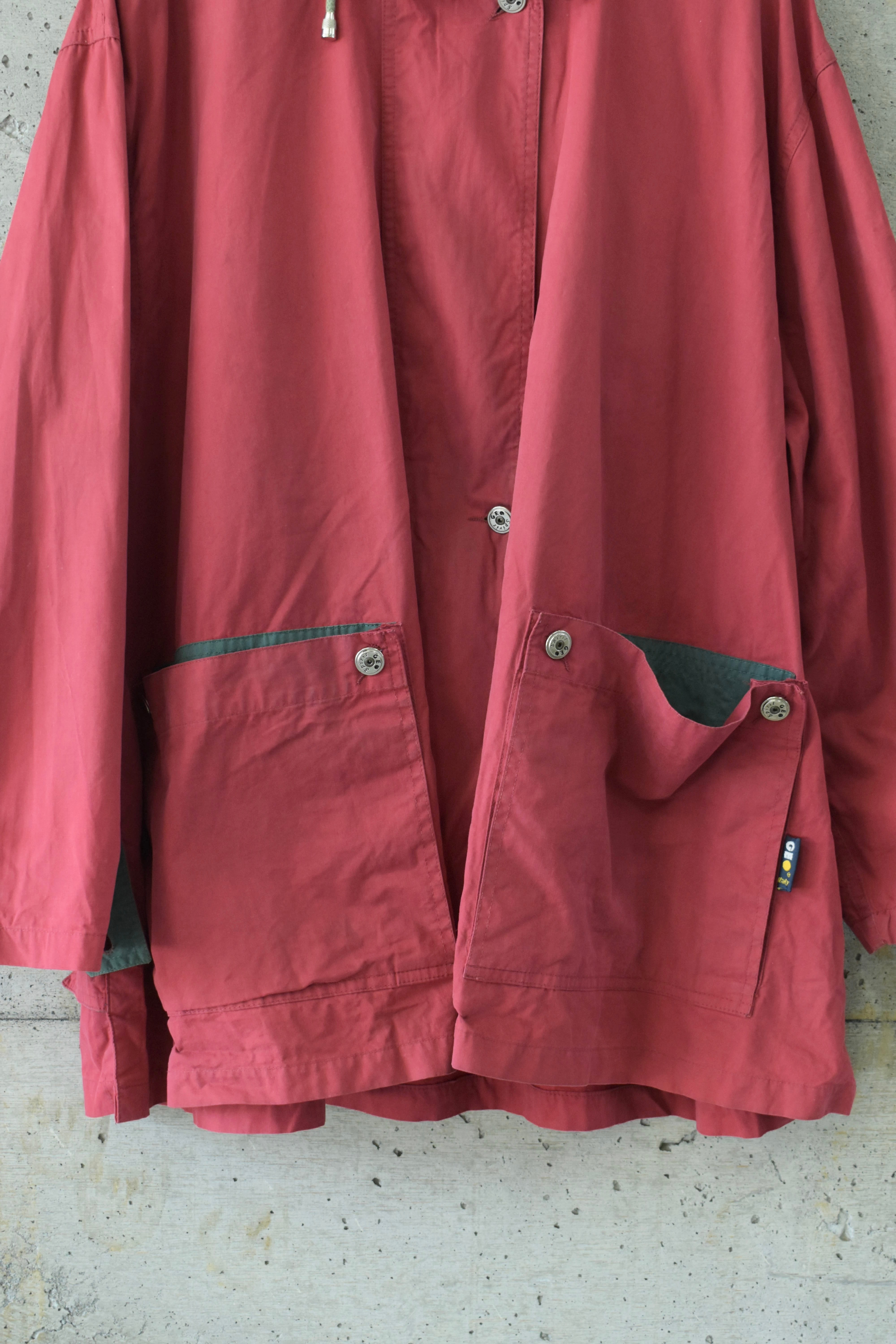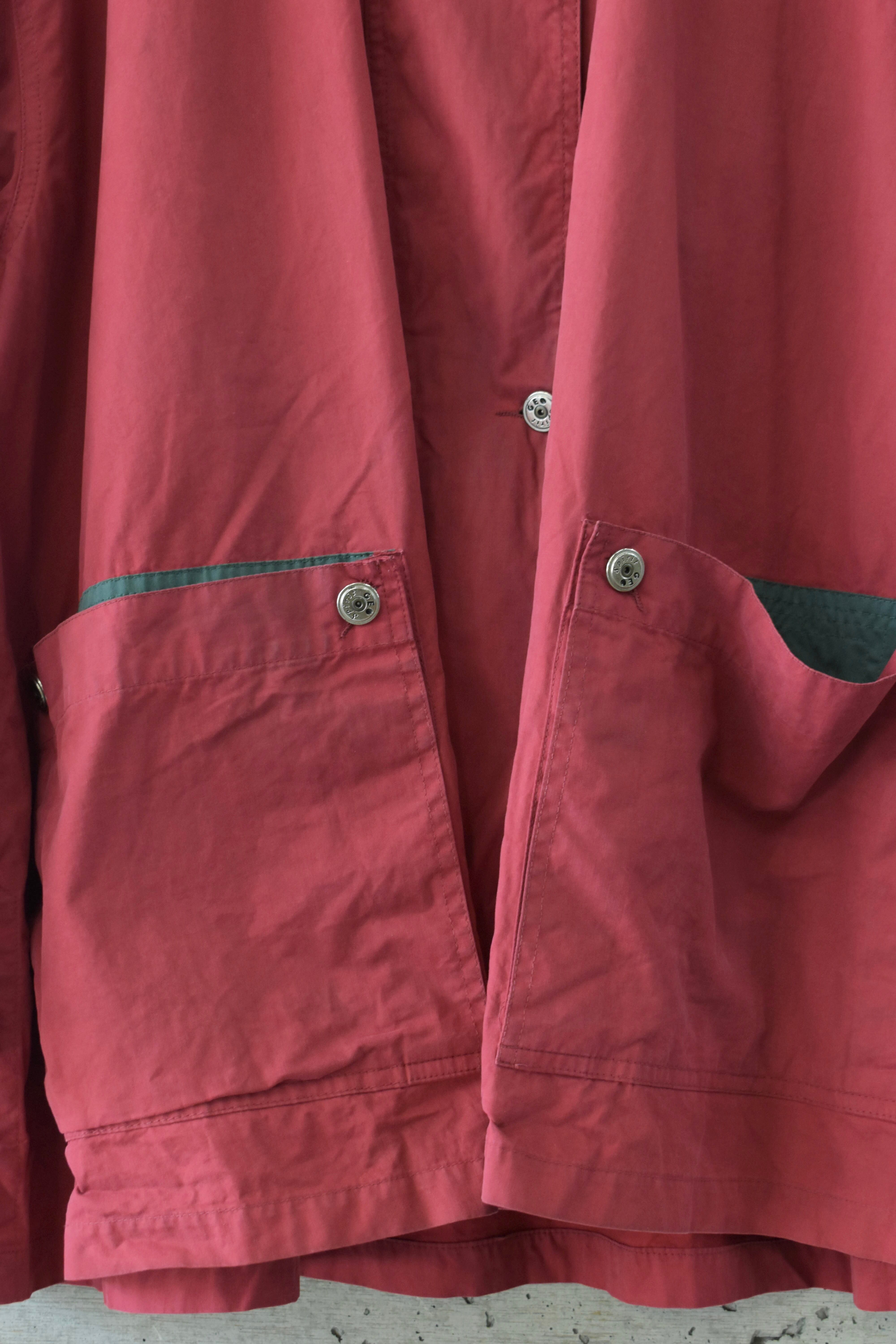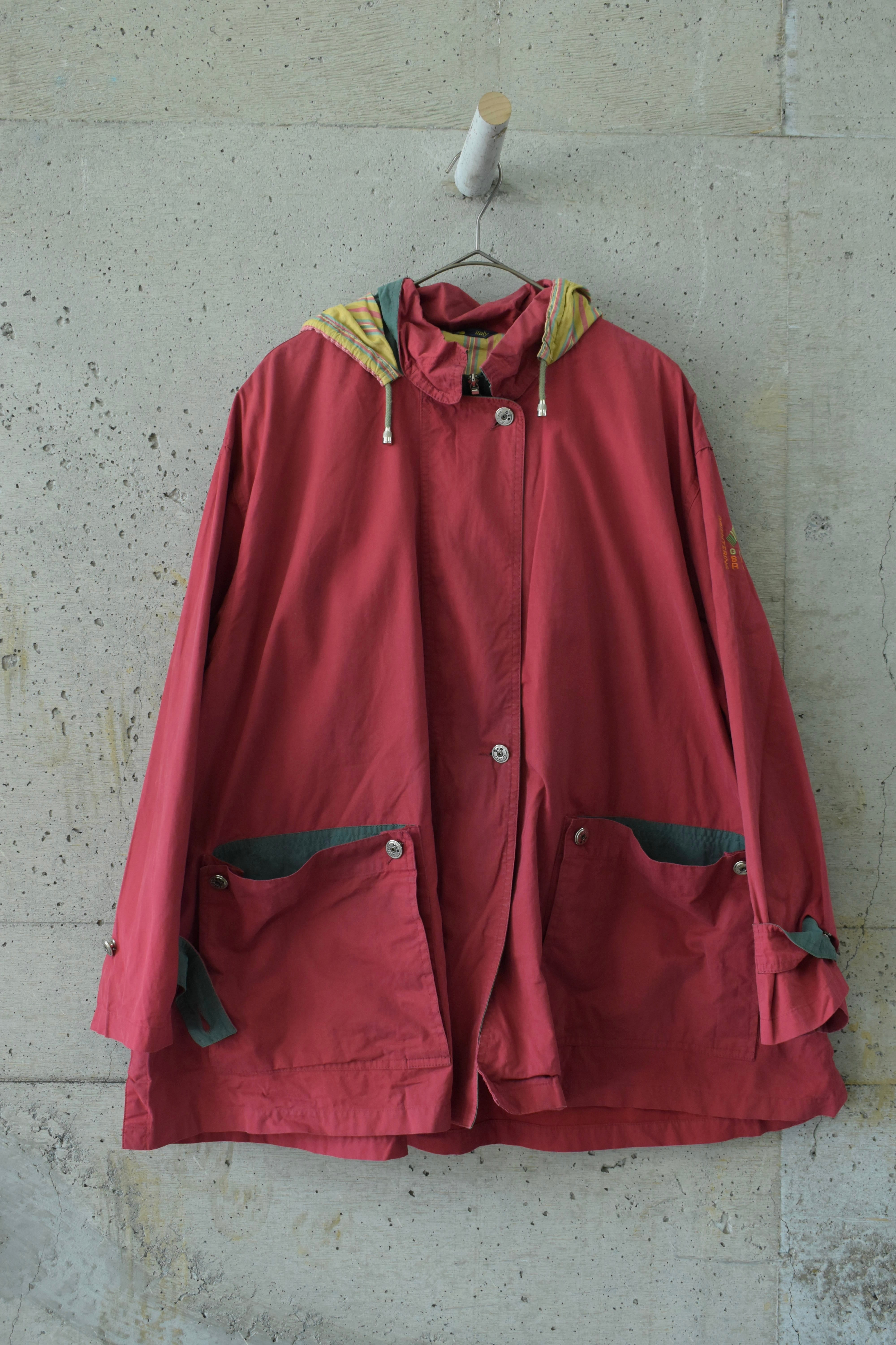 少し褪せたような赤に、どこか懐かしさを感じるマウンテンパーカーです。