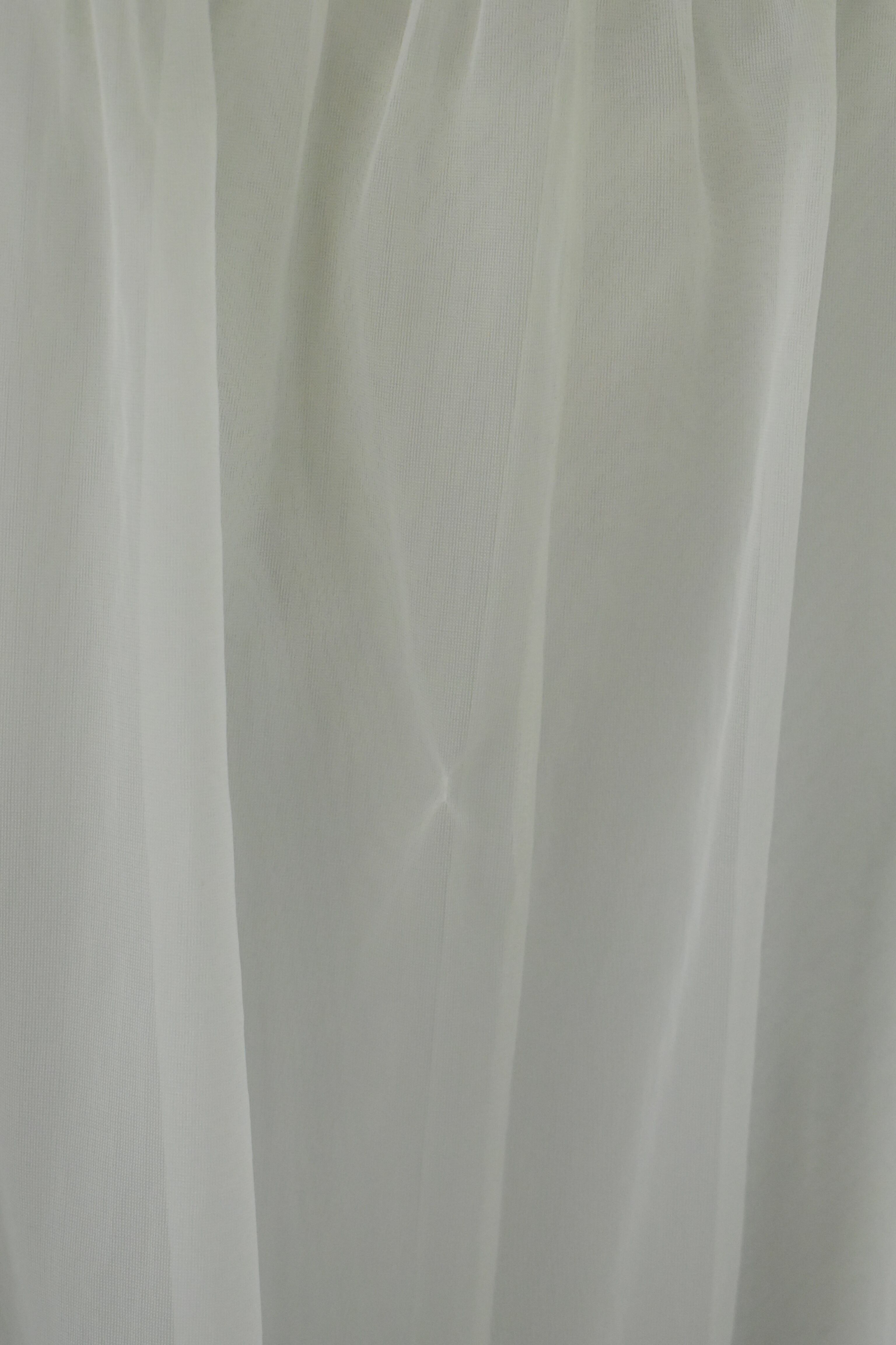 ネック下から広がるフレアなチュールはふんわりとボリュームのあるシルエットになりますが、膝丈なのですっきりとした印象も与えてくれます。