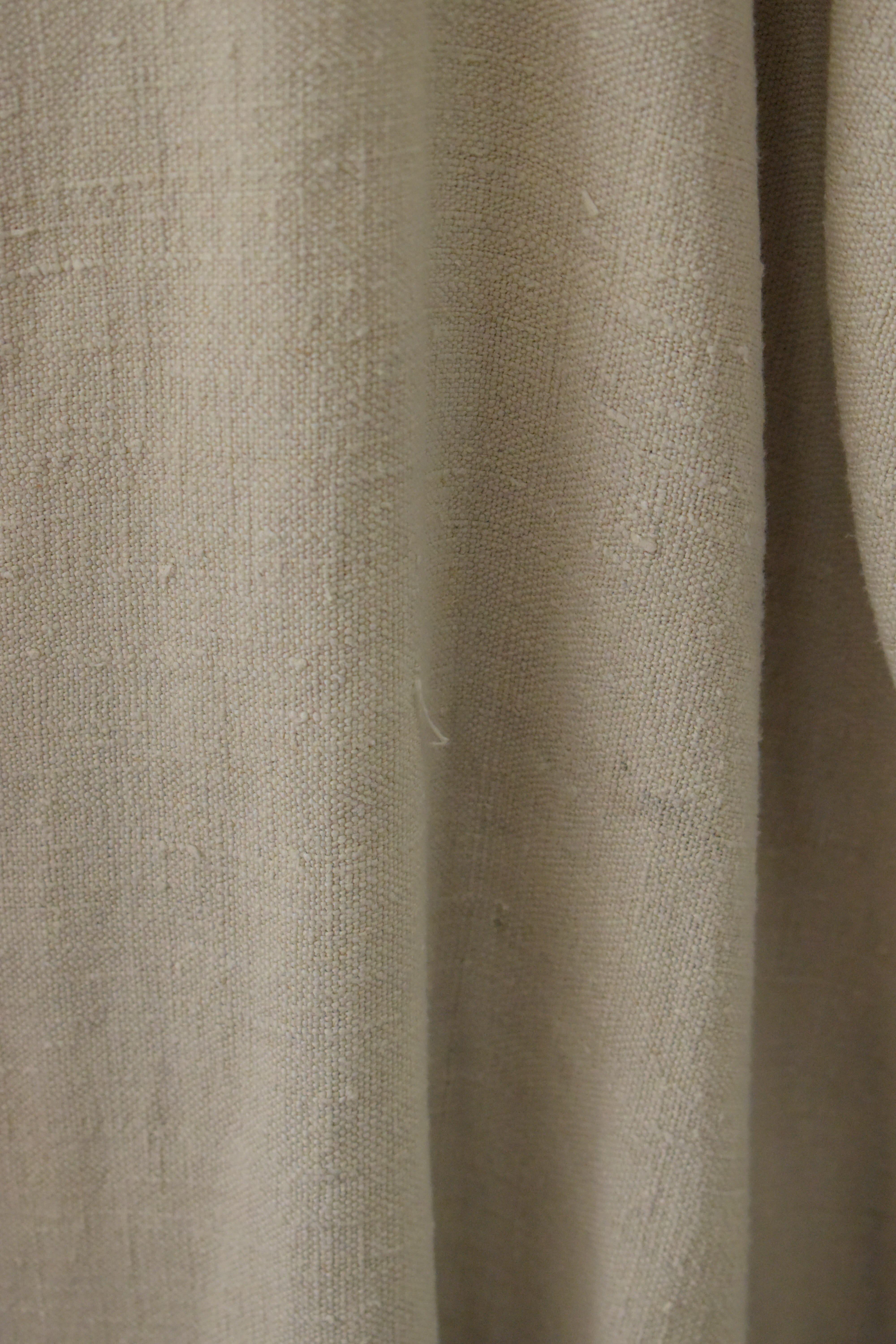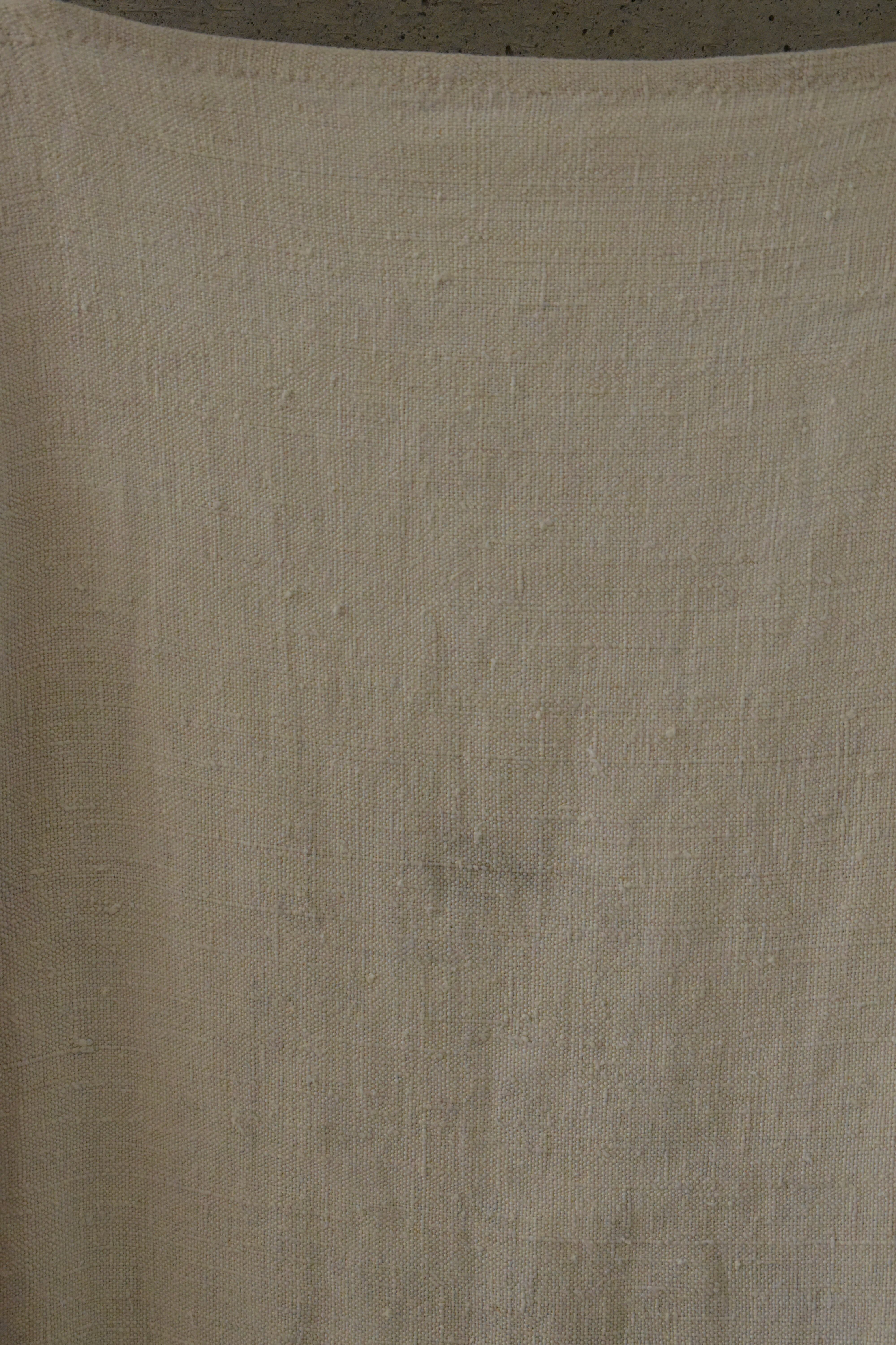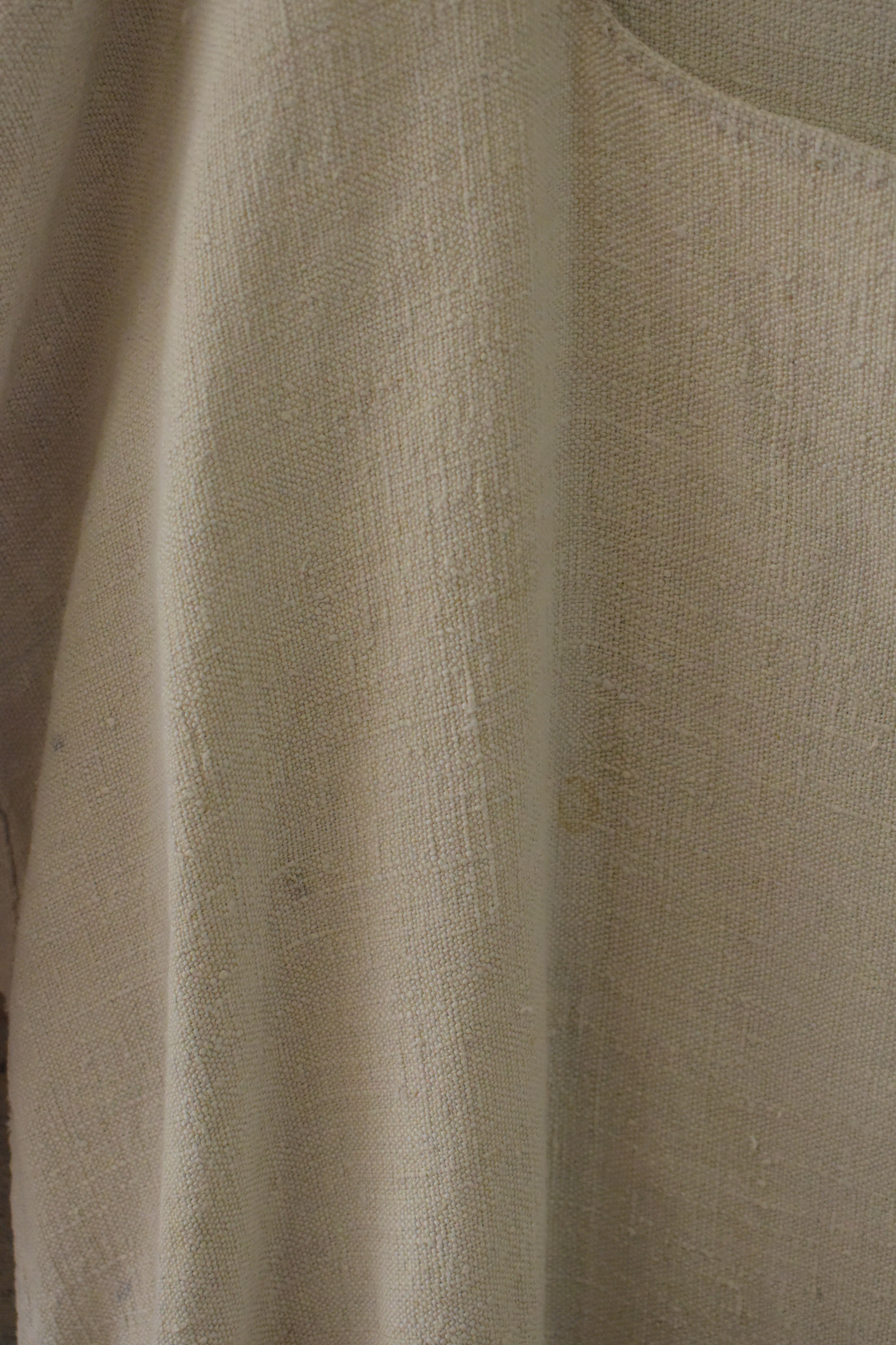 コットンやリネンのような、しっかりとした質感の生地に、手縫いの縫製が感じられるワンピースです。